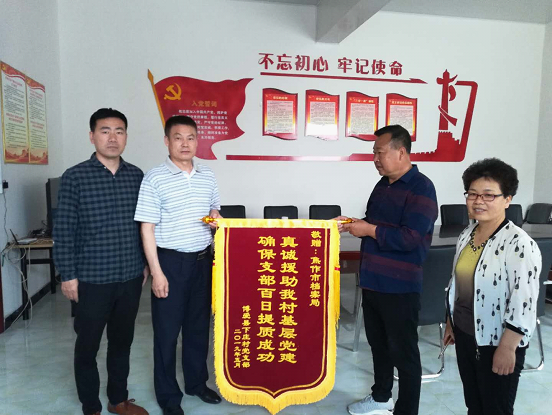 5月28日上午,鸿昌街道下庄村党支部将一面写着“真诚援助我村基层党建,确保支部百日提质成功”的锦旗,送到了市档案局驻下庄村工作组组长手中。这是下庄村党支部感谢帮扶单位市档案局的一个镜头。