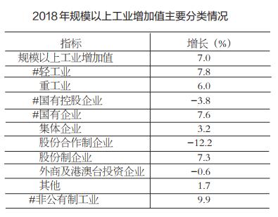 规模以上工业增加值比上年增长7.0%;产品销售率98.4%。