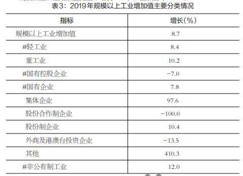 规模以上工业增加值比上年增长8.7%;产品销售率98.1%。