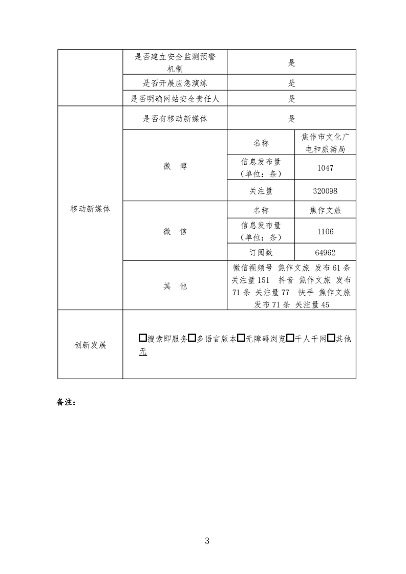 2021年焦作市文化广电和旅游局网站工作年度报表