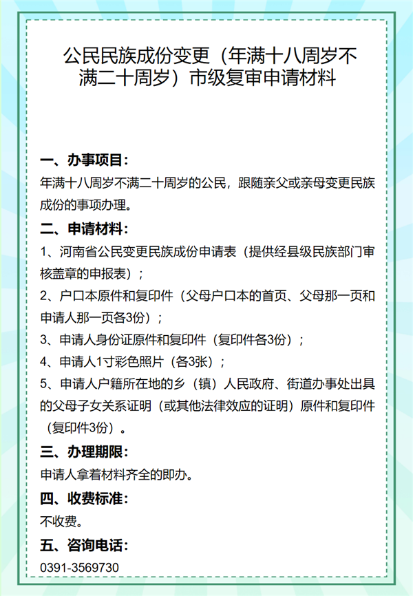 1.公民民族成份变更(年满十八周岁不满二十周岁)市级复审材料