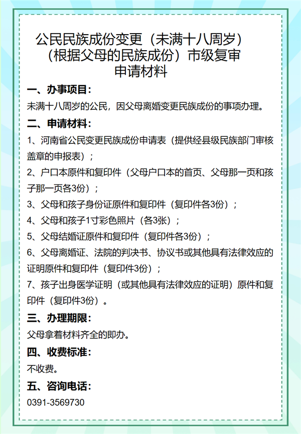 2.公民民族成份变更(未满十八周岁)(根据父母的民族成份)市级复审申请材料