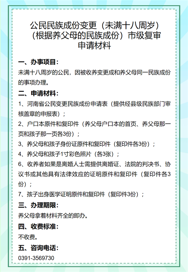 4.公民民族成份变更(未满十八周岁)(根据养父母的民族成份)市级复审材料