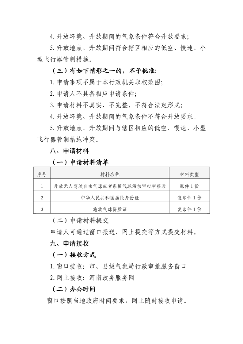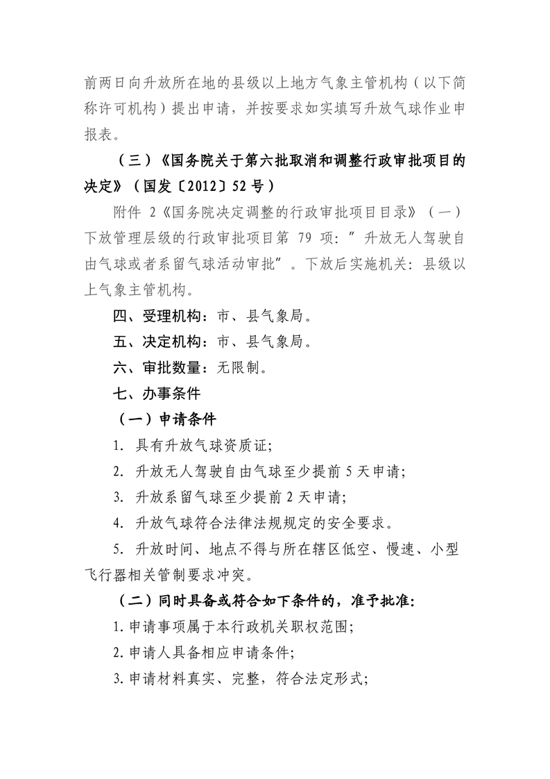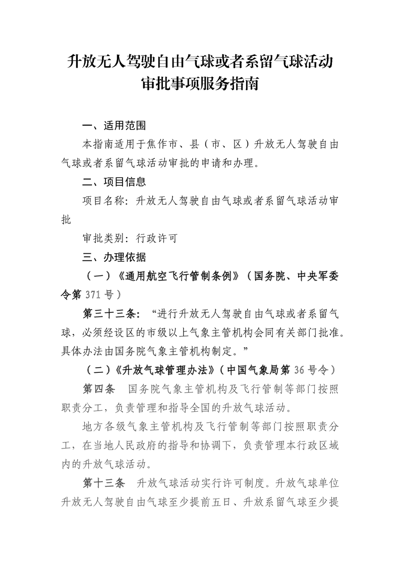 4升放无人驾驶自由气球或者系留气球活动审批事项服务指南