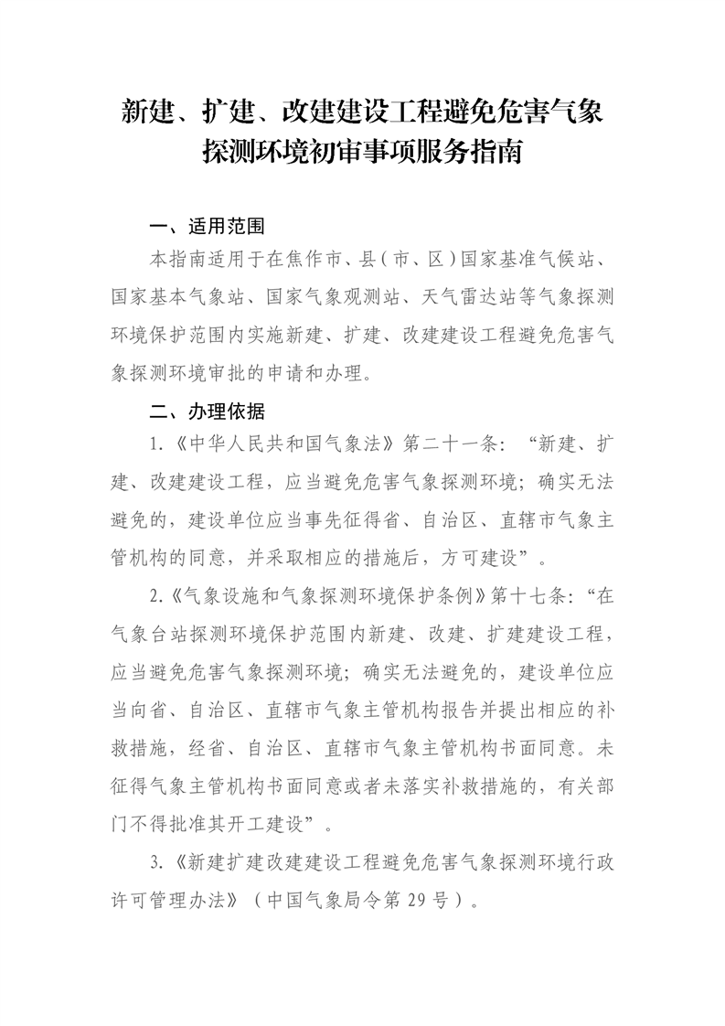 5新建、扩建、改建建设工程避免危害气象探测环境初审事项服务指南