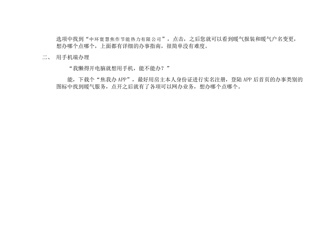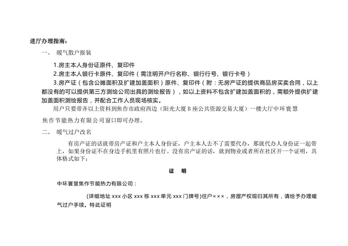《中寰环慧焦作节能热力有限公司“白话版”办事指南》