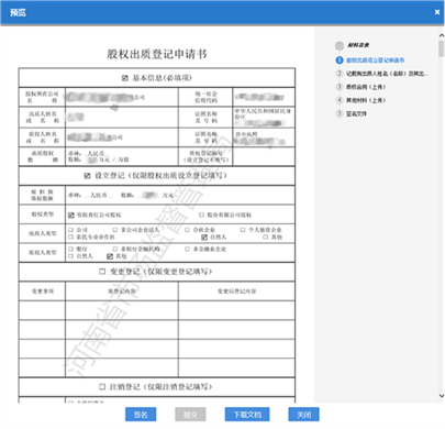 ① 出质信息中,填写的“出质股权数额”不得超出出质人在该企业持有的最高股权数额。
