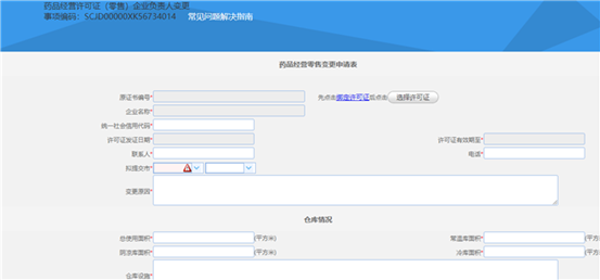 在事项列表-行政许可中找到“药品零售企业许可”点击“在线办理”进入办理页面