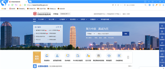 输入网址http://www.hnzwfw.gov.cn/打开河南政务服务网(请使用搜狗浏览器高速模式或者360浏览器极速模式打开)