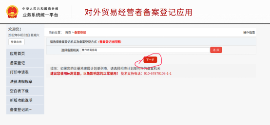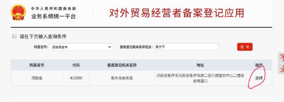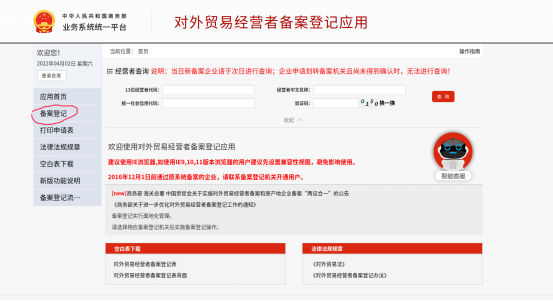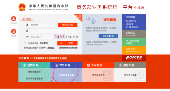 1. 登陆商务部业务系统统一平台,点击对外贸易经营者备案