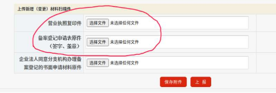 4.材料只需上传前两个,营业执照复印件盖公章,备案登记申请表原件正反两面都需要拍照上传,背面盖公章,如果不会pdf模式可以用压缩包上传正反两面,全部填写完提交上传,审查完毕后带营业执照复印件盖公章,法人身份证复印件盖公章,备案登记表原件正反两面反面盖公章来商务局窗口领取备案表。