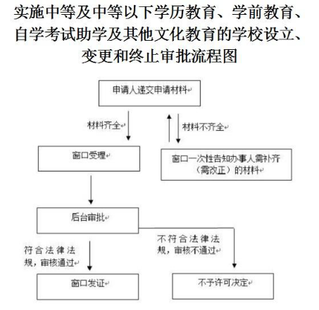 实施中等及中等以下学历教育、学前教育、自学考试助学及其他文化教育的学校设立、变更和终止审批