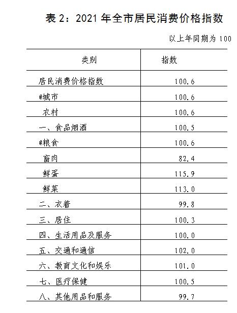 全年居民消费价格总水平比上年上涨0.6%。其中,城市上涨0.6%,农村上涨0.6%。商品零售价格上涨1.2%。其中,城市上涨1.1%,农村上涨1.3%。