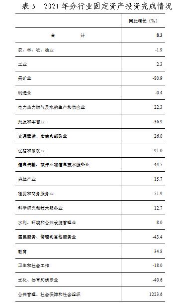 全年全市固定资产投资(不含农户,下同)比上年增长8.3%。其中,第一产业投资增长26.3%,第二产业投资增长2.3%,第三产业投资增长12.2%。基础设施投资增长18.8%,民间投资增长6.1%,工业投资增长2.3%。