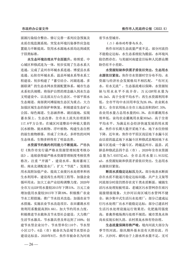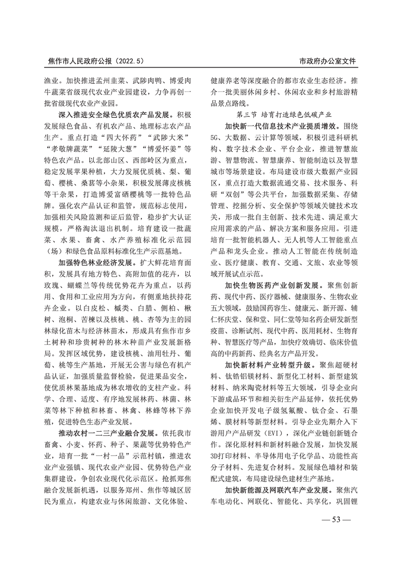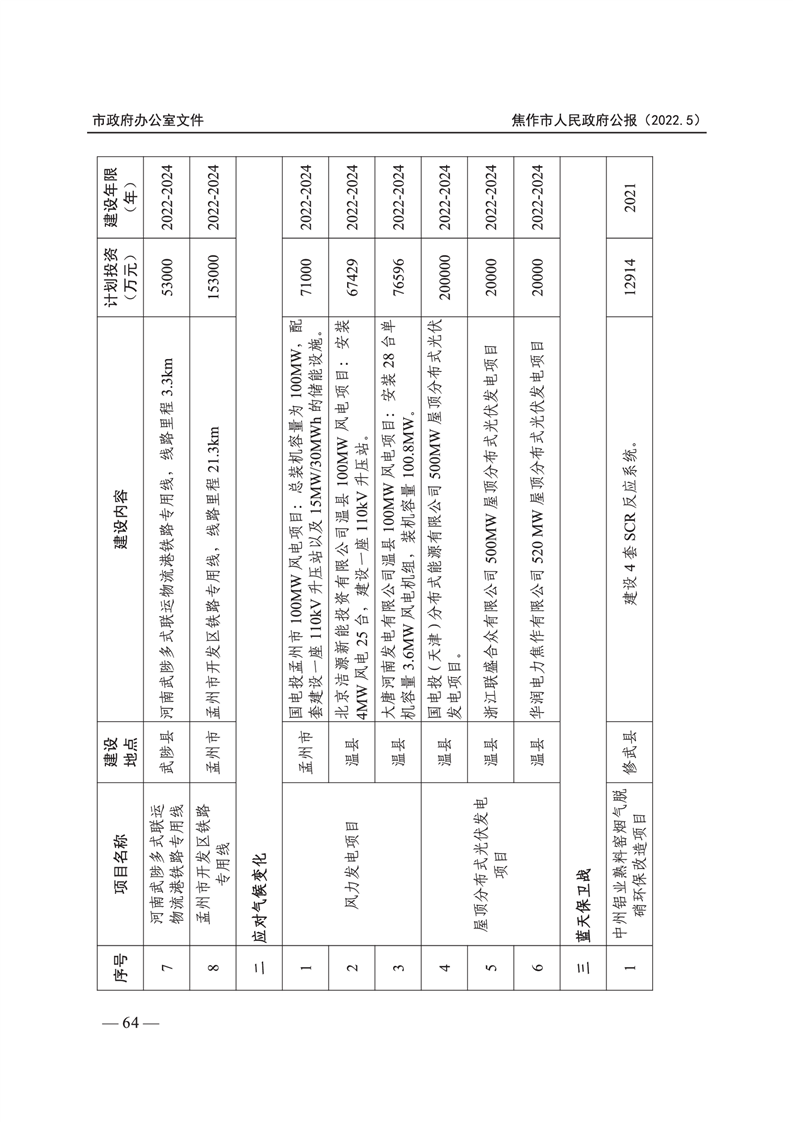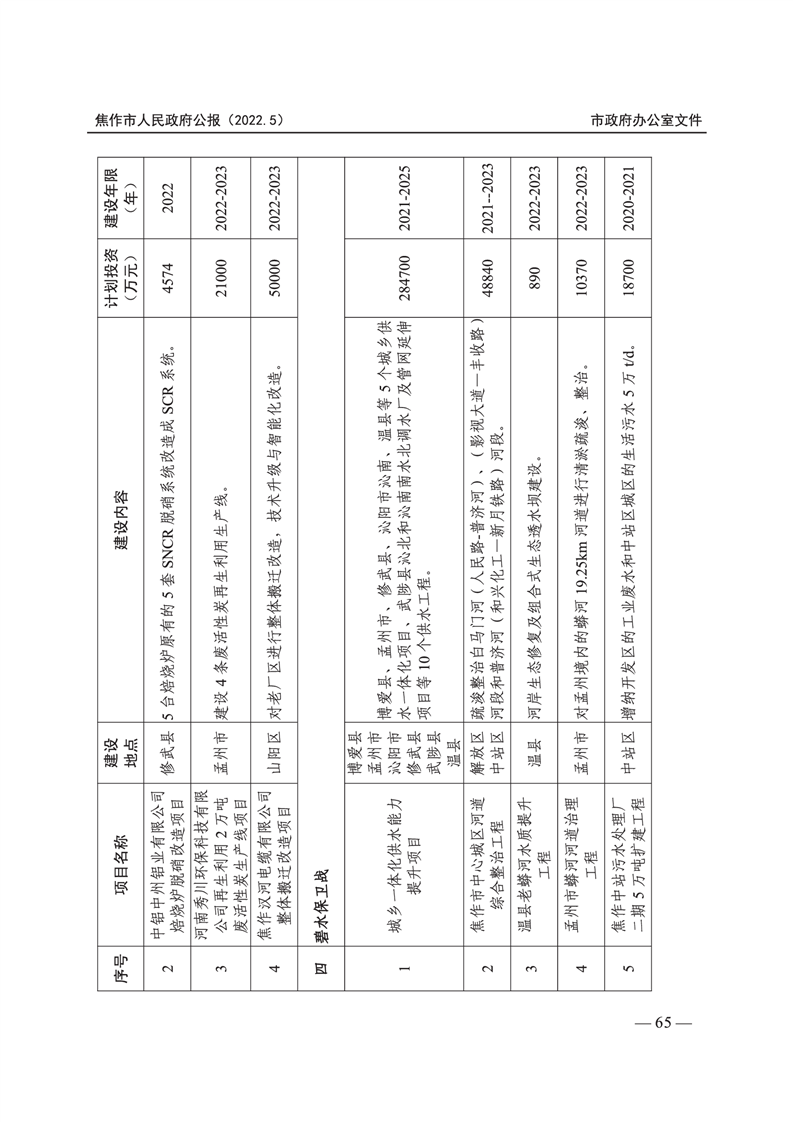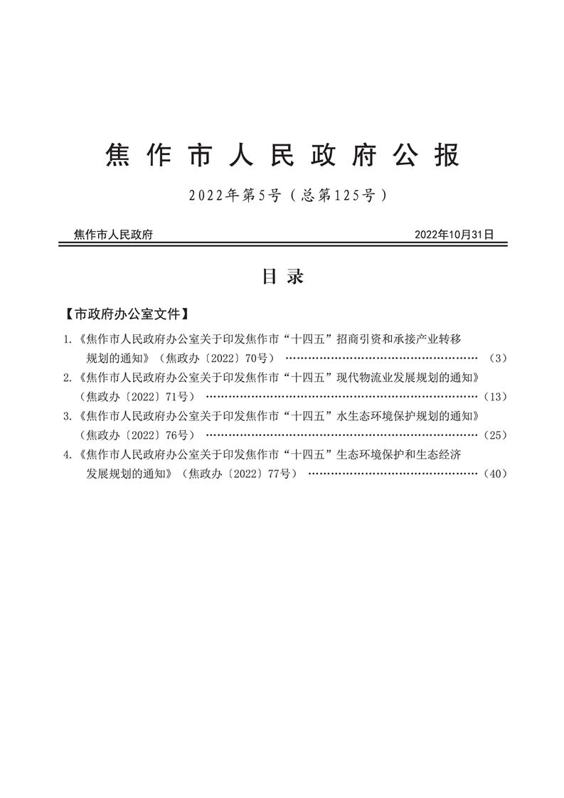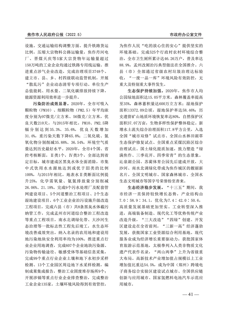 焦作市人民政府公报 2022年第5号