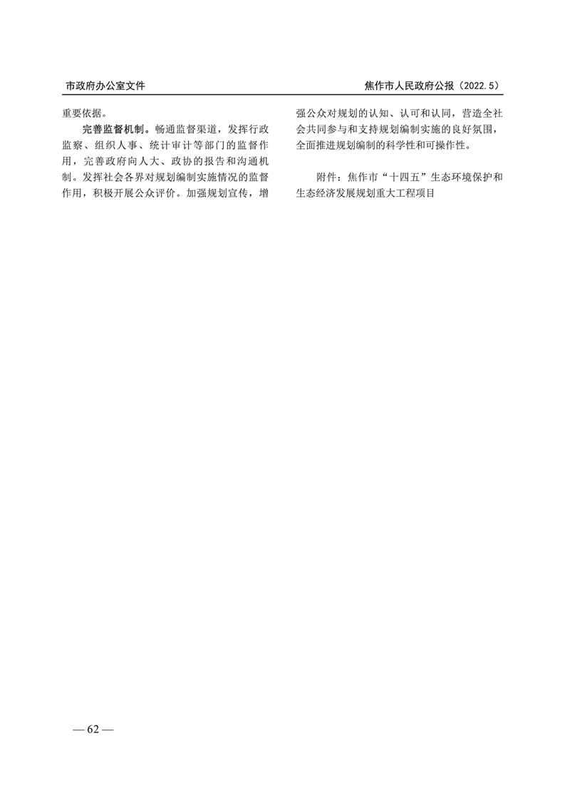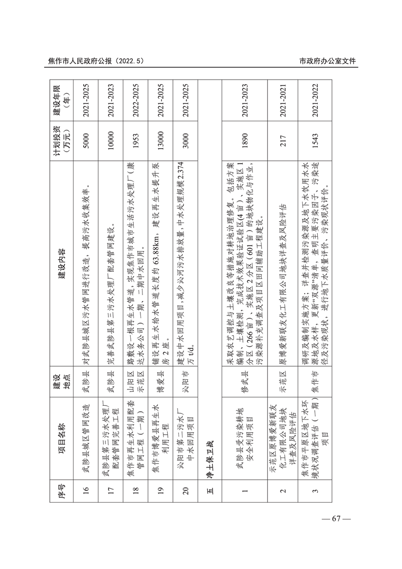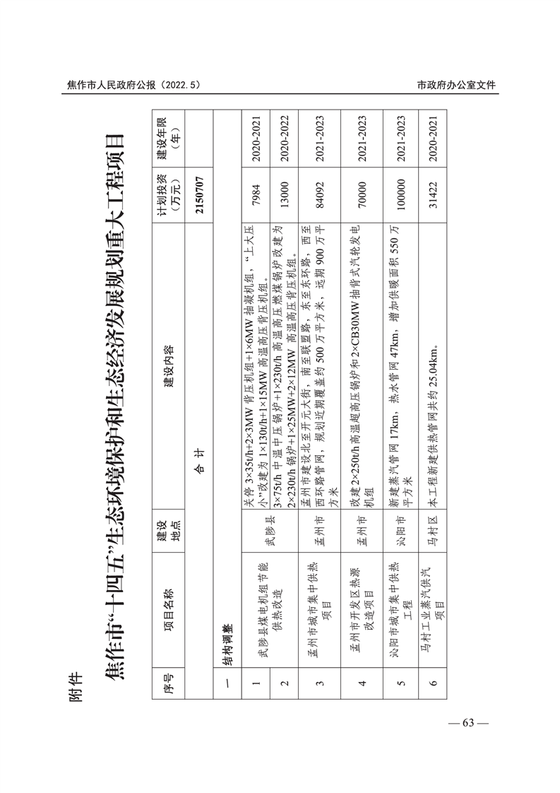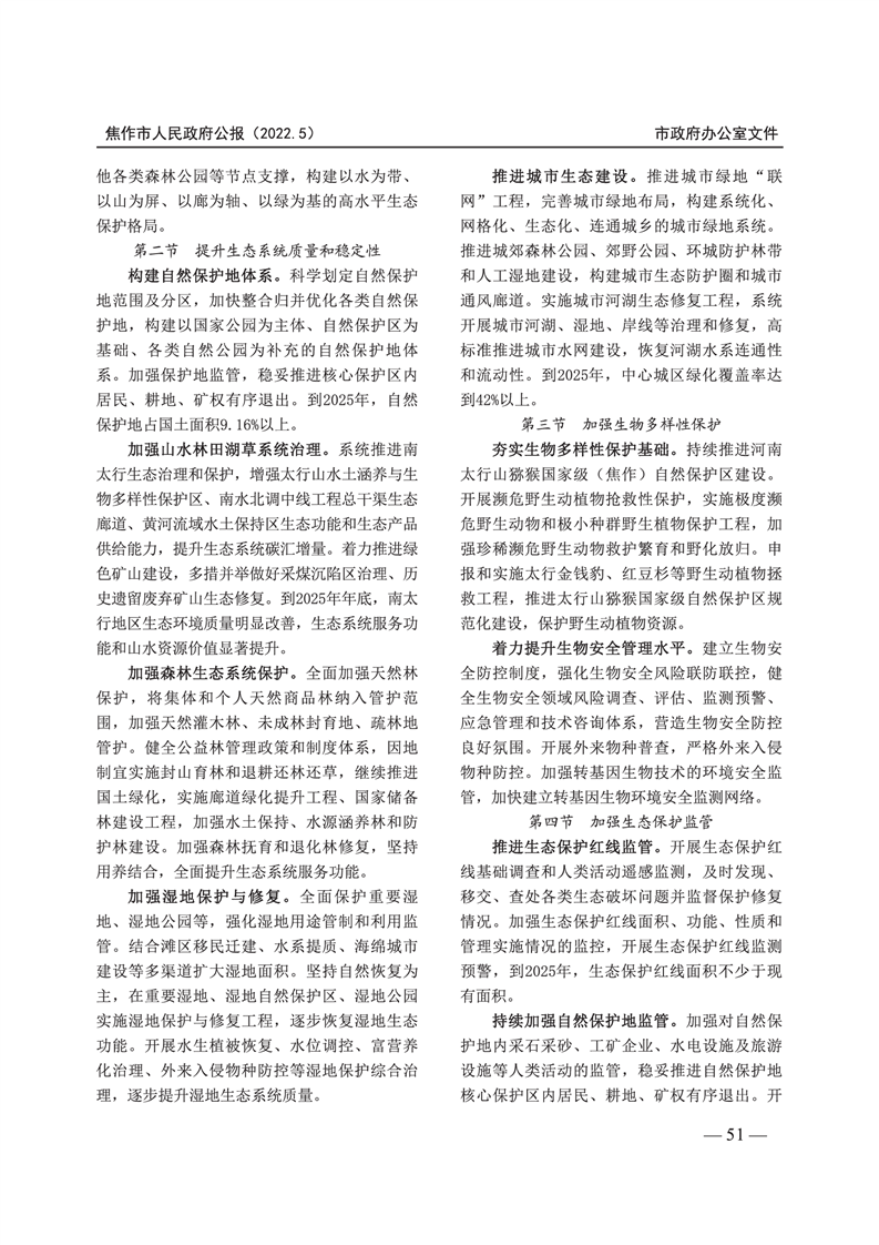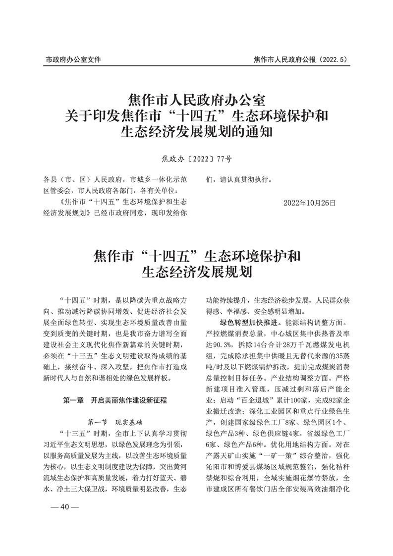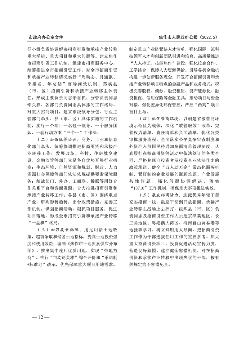 焦作市人民政府公报 2022年第5号