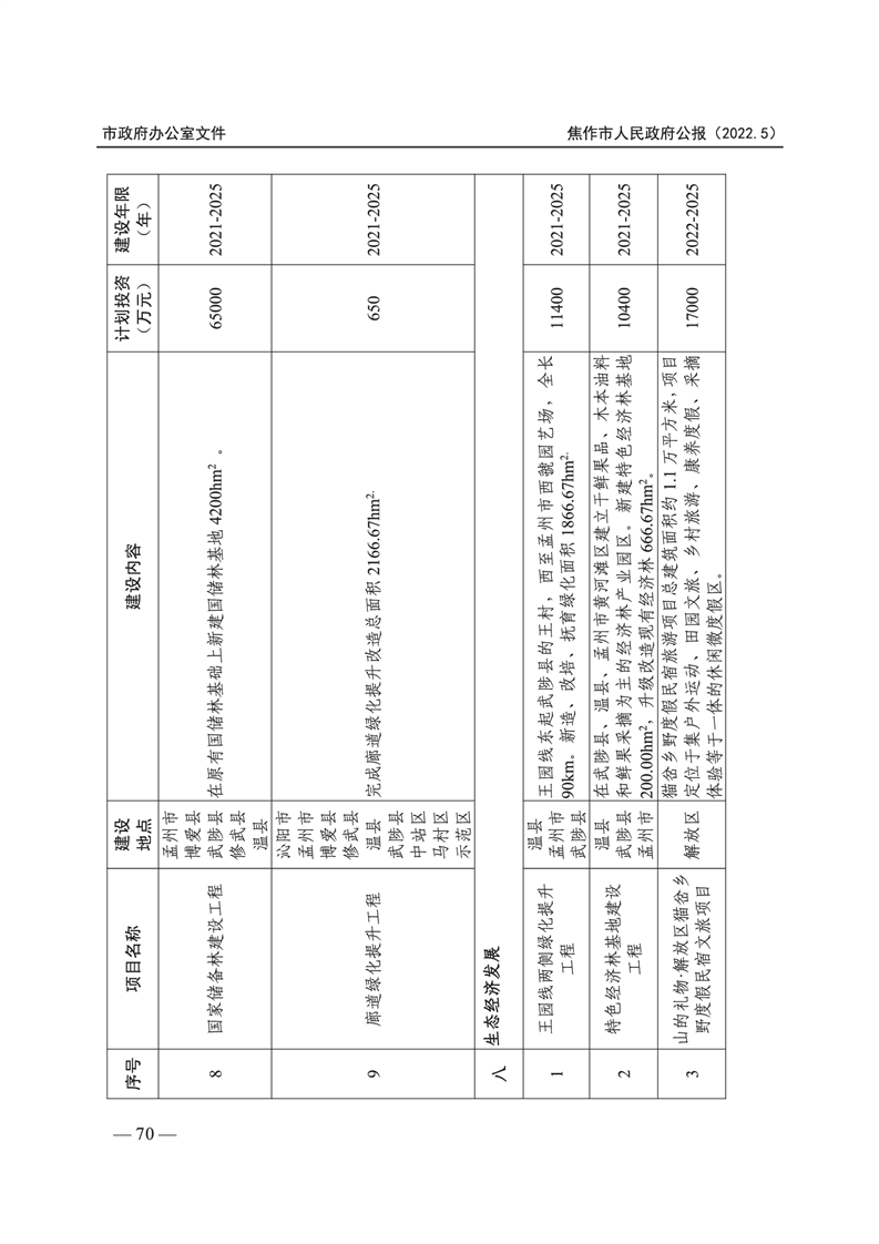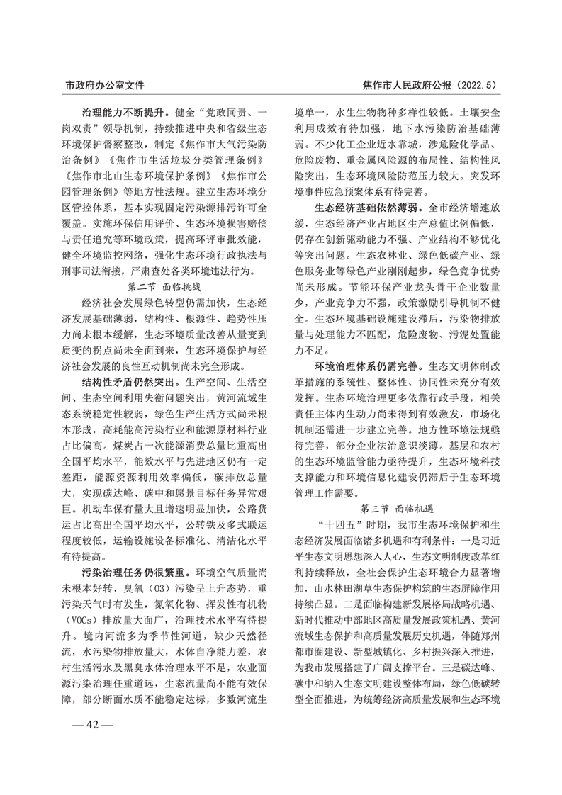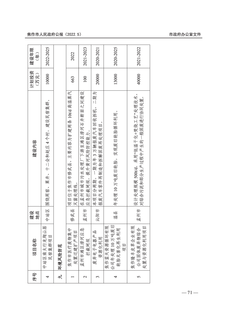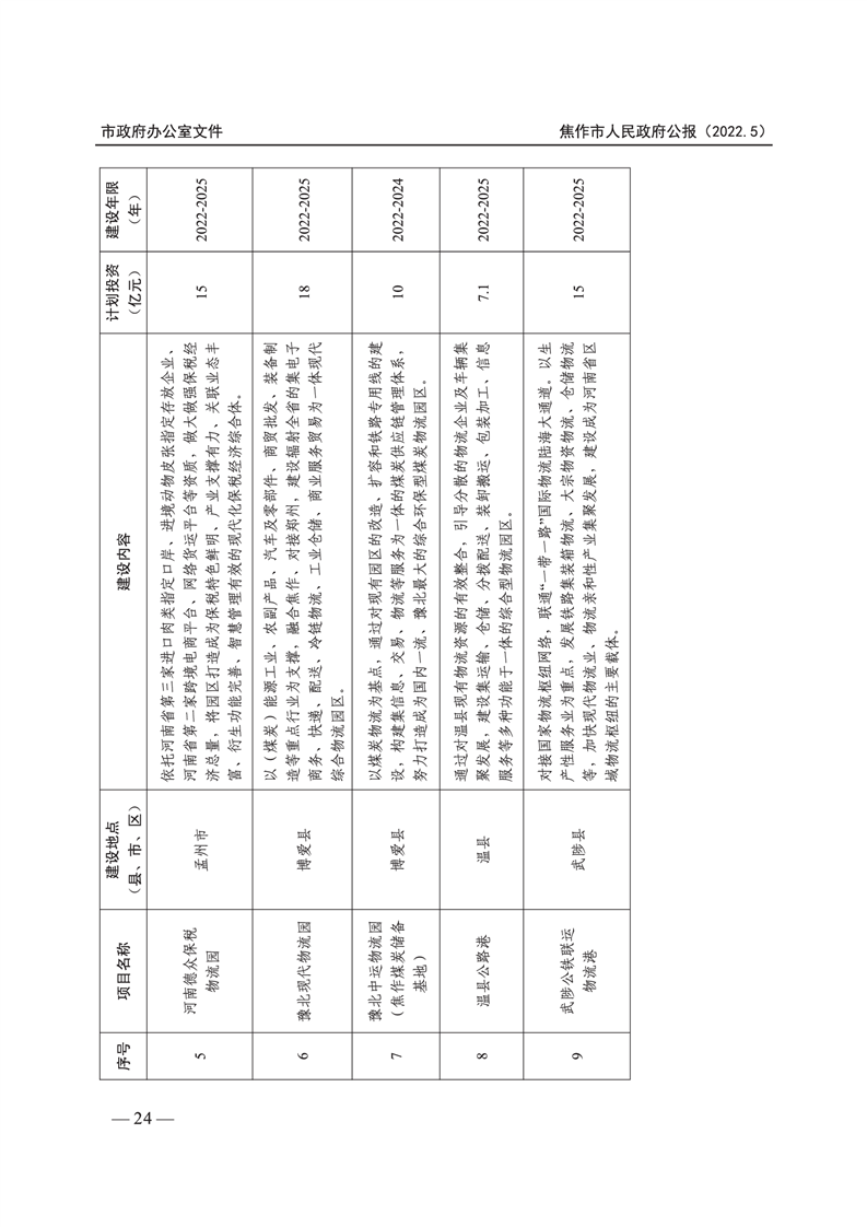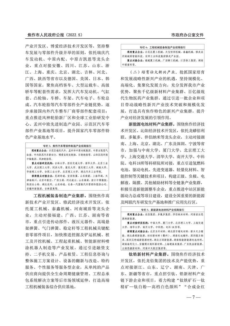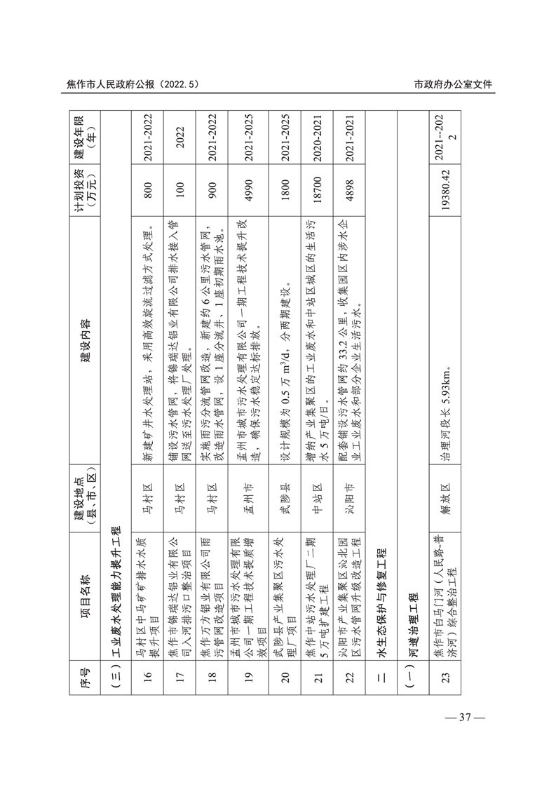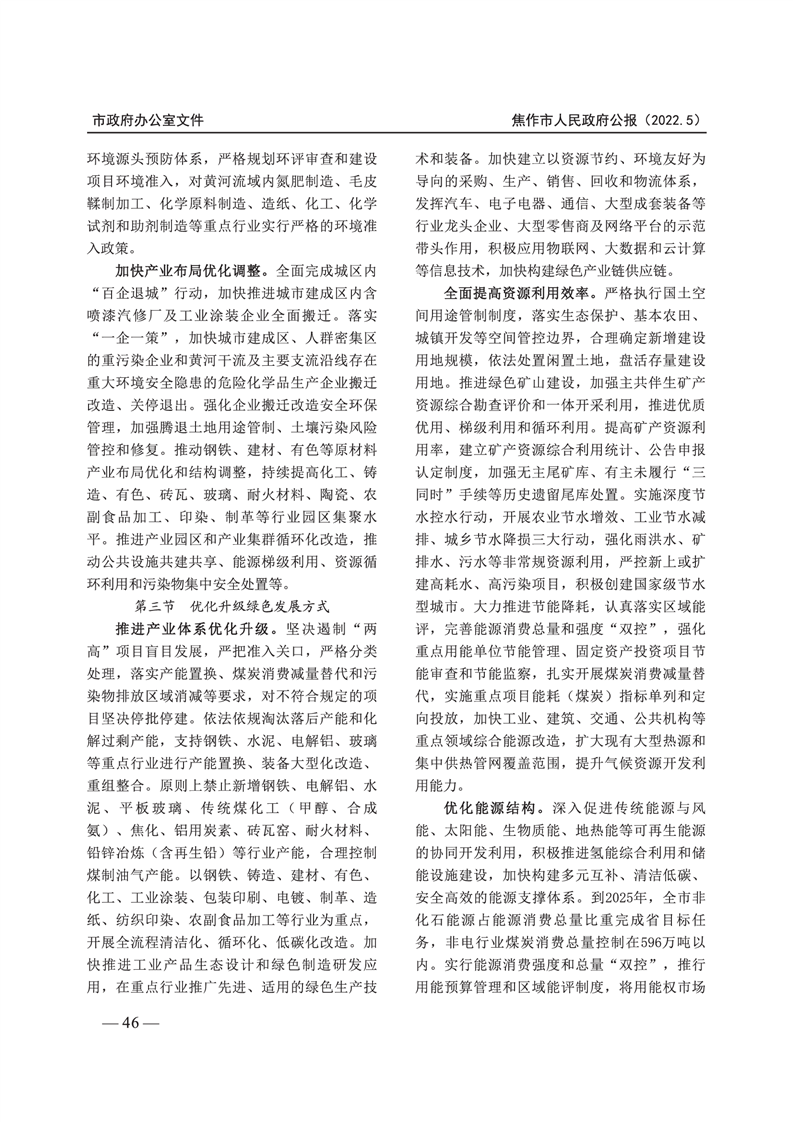 焦作市人民政府公报 2022年第5号