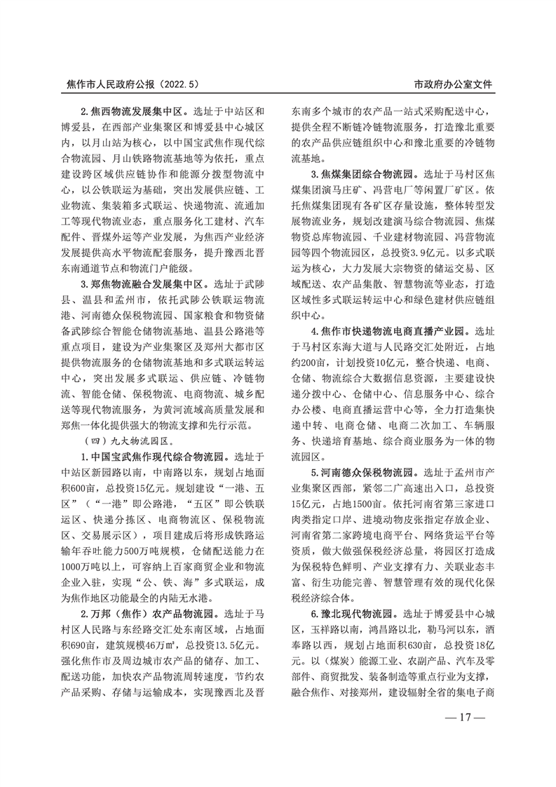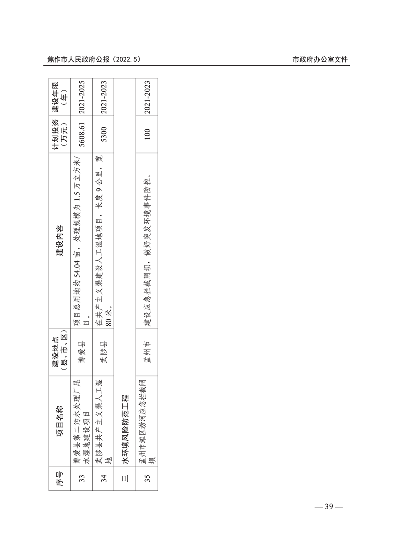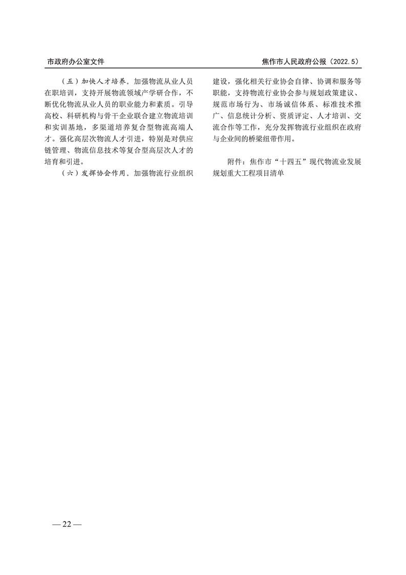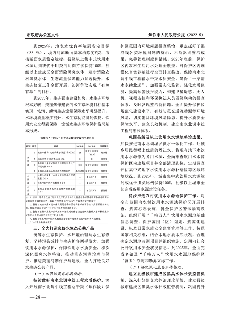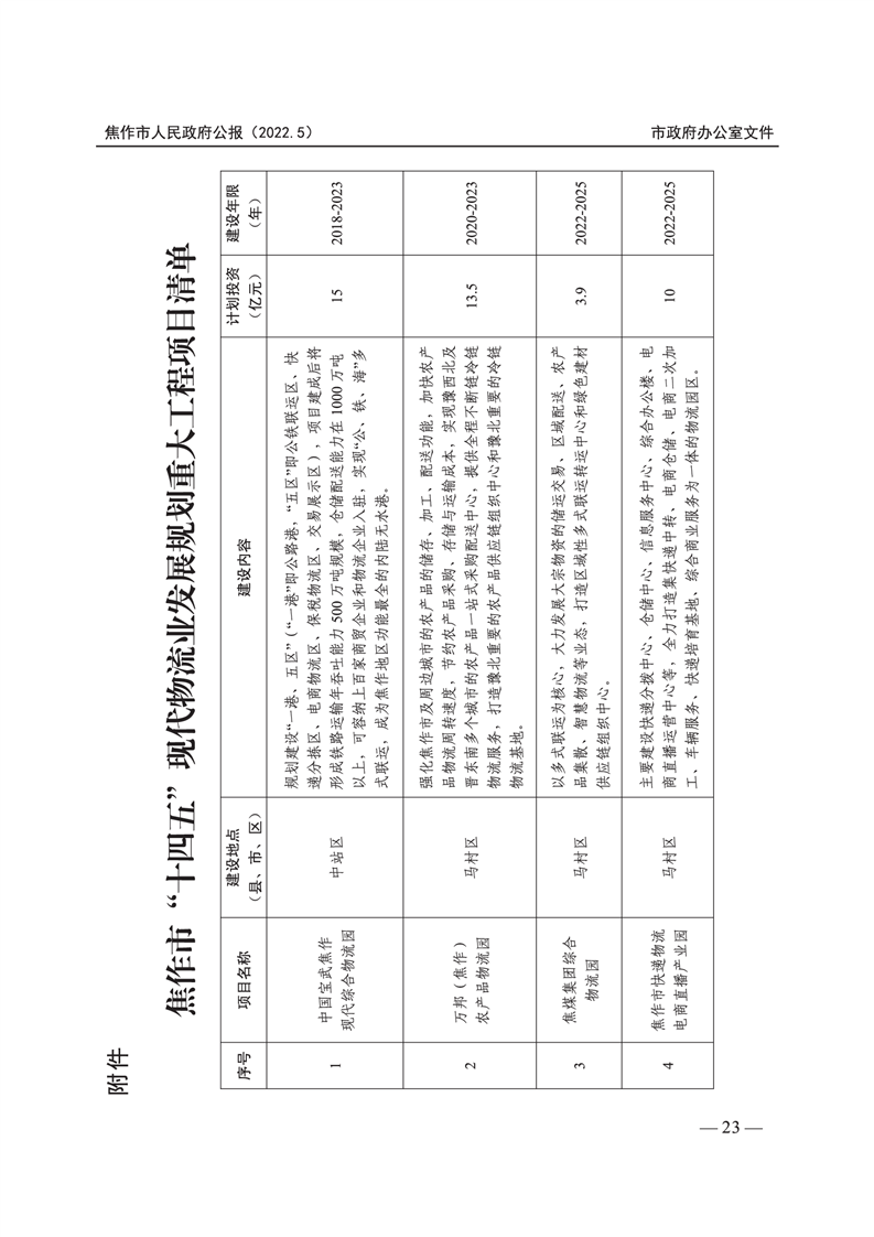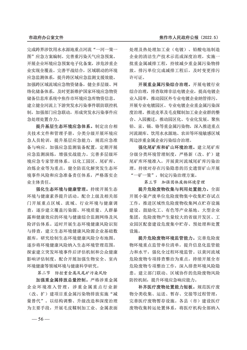 焦作市人民政府公报 2022年第5号
