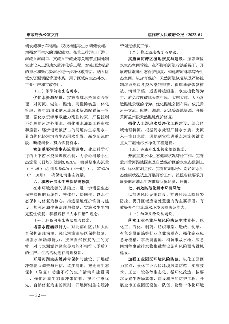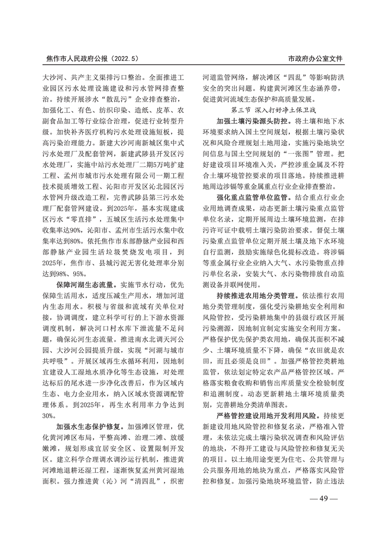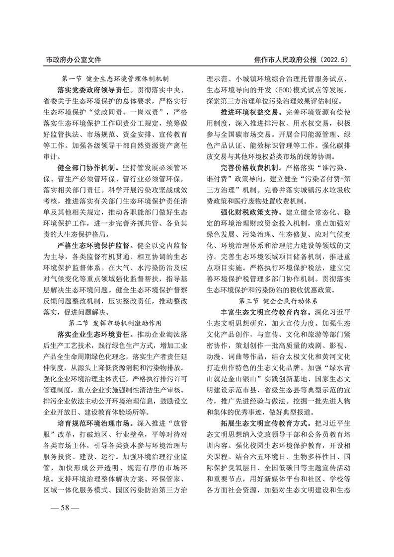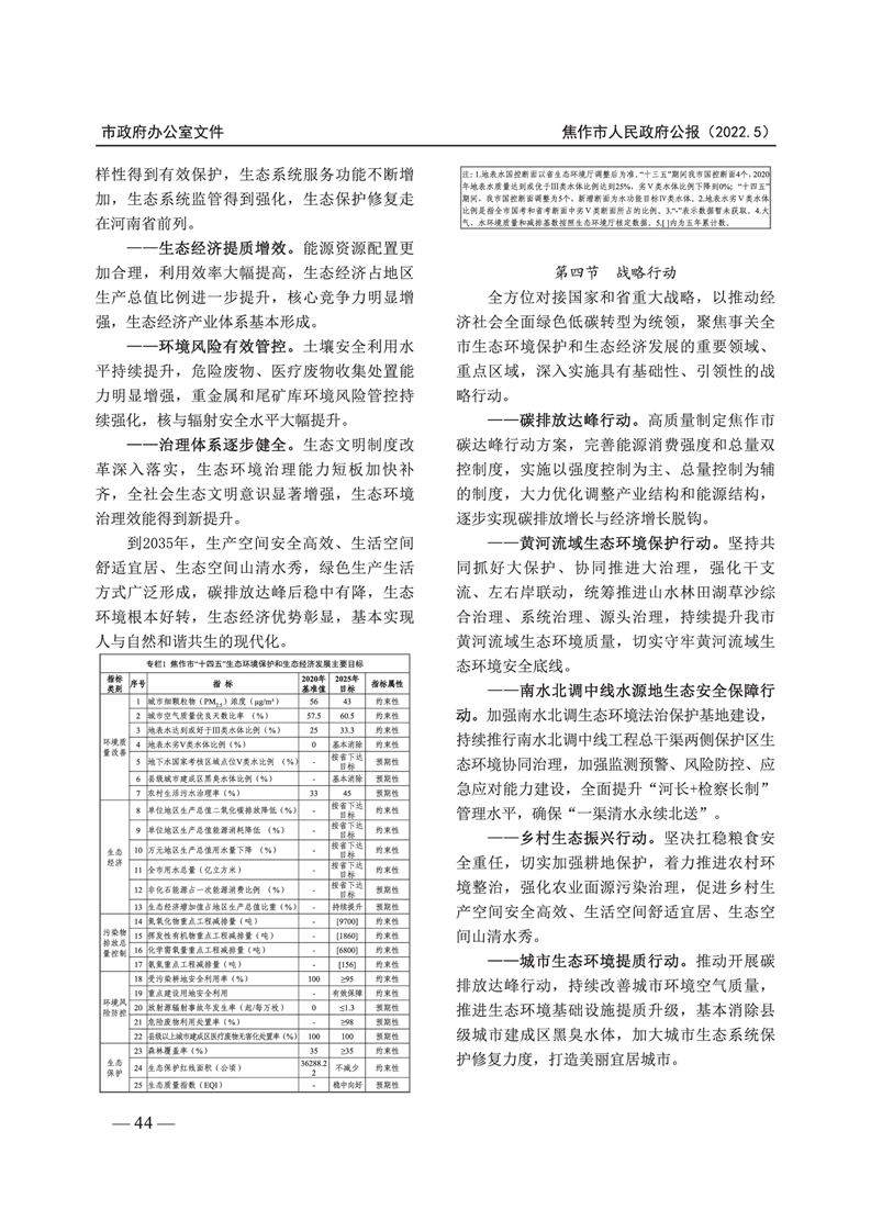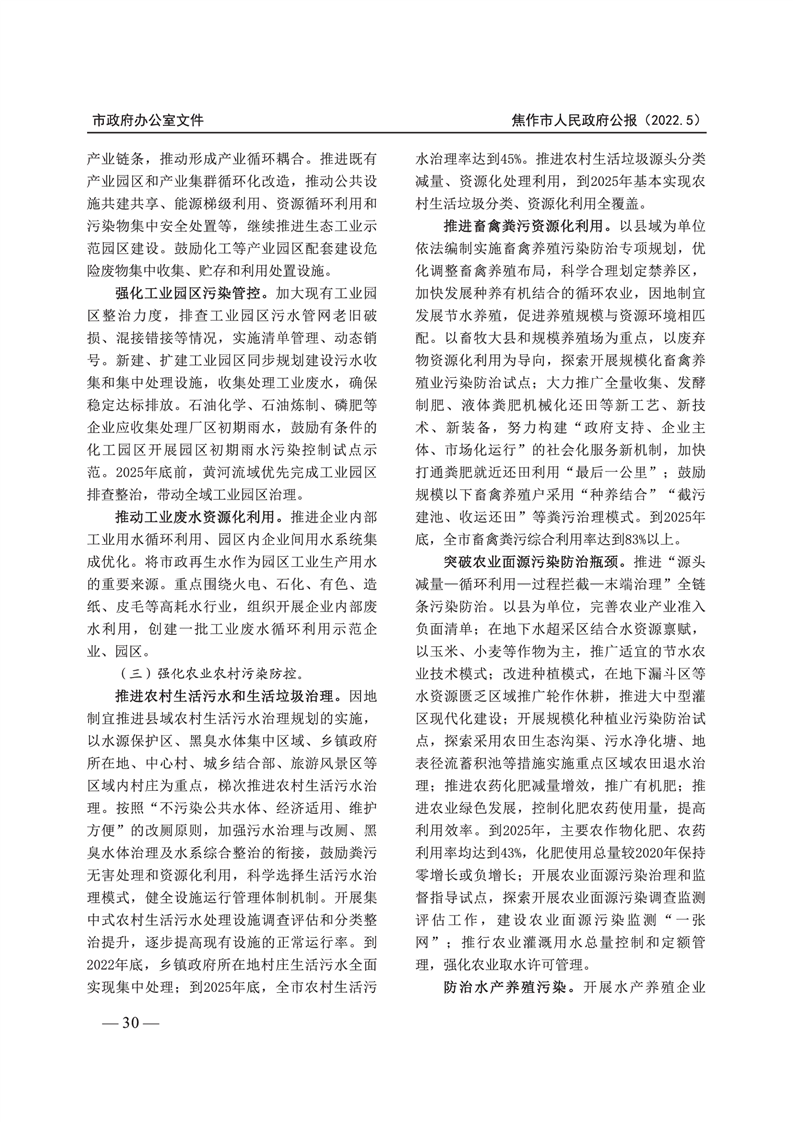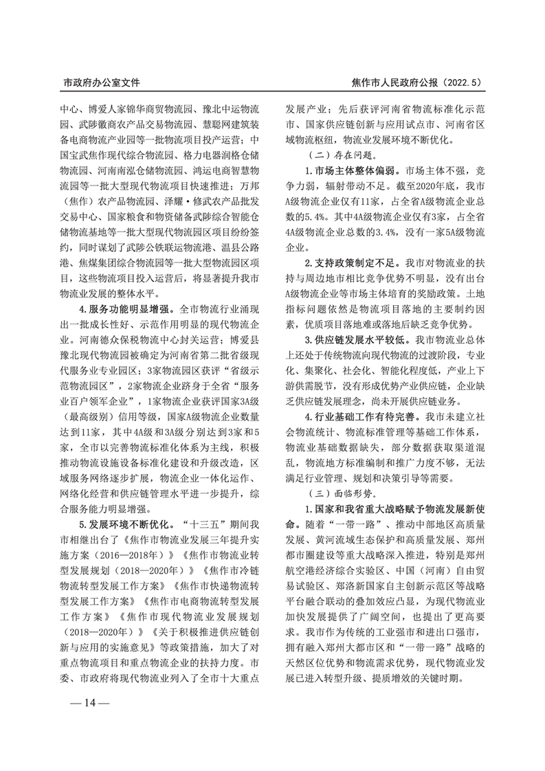 焦作市人民政府公报 2022年第5号