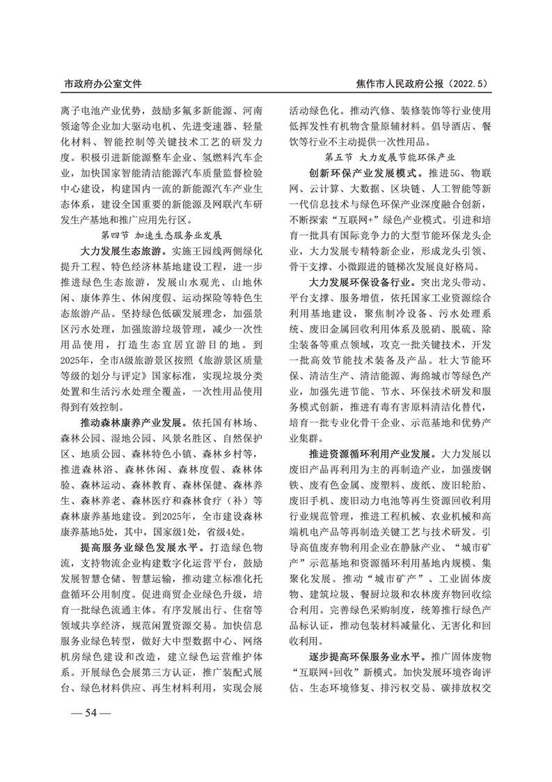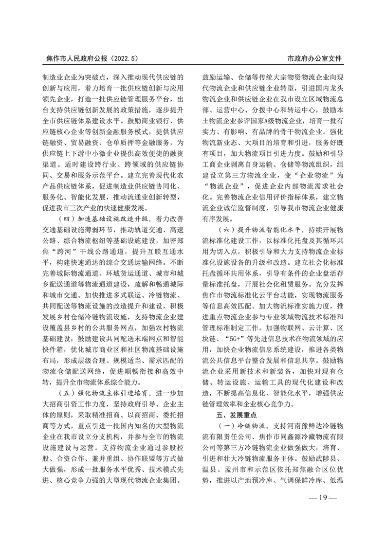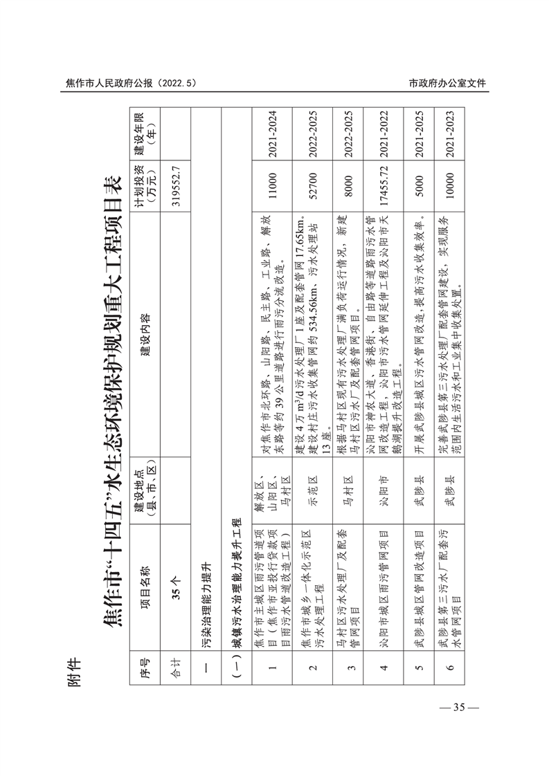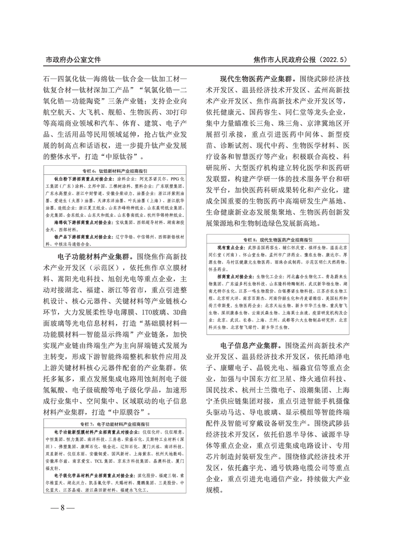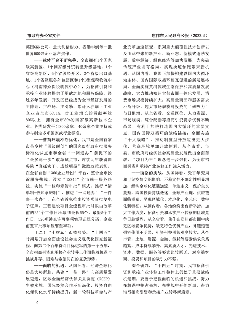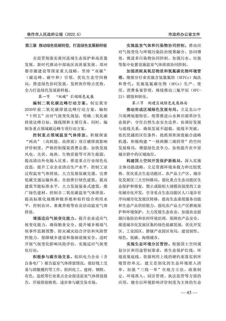 焦作市人民政府公报 2022年第5号