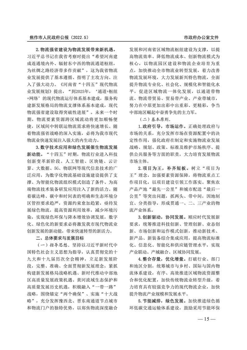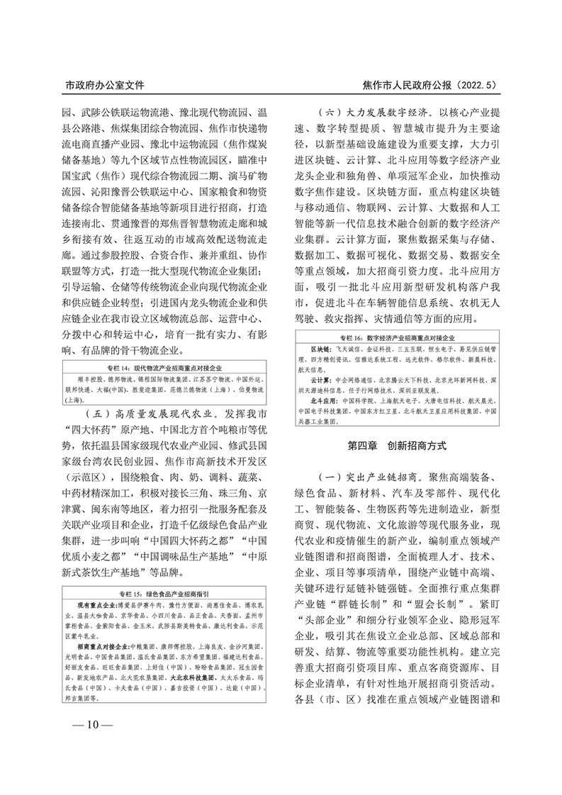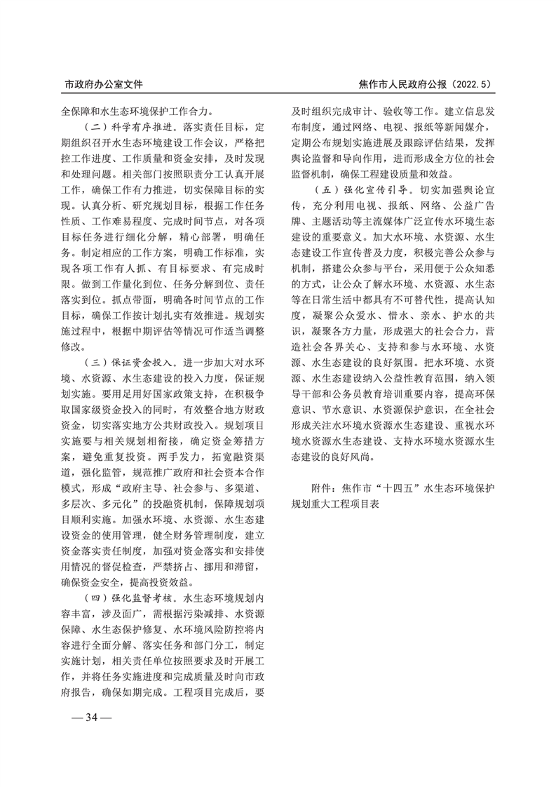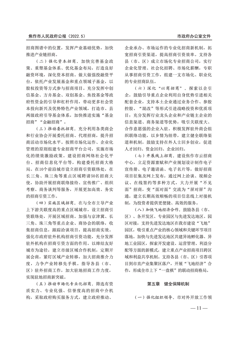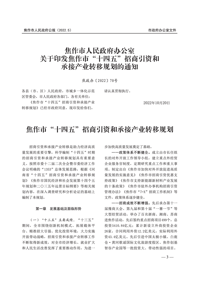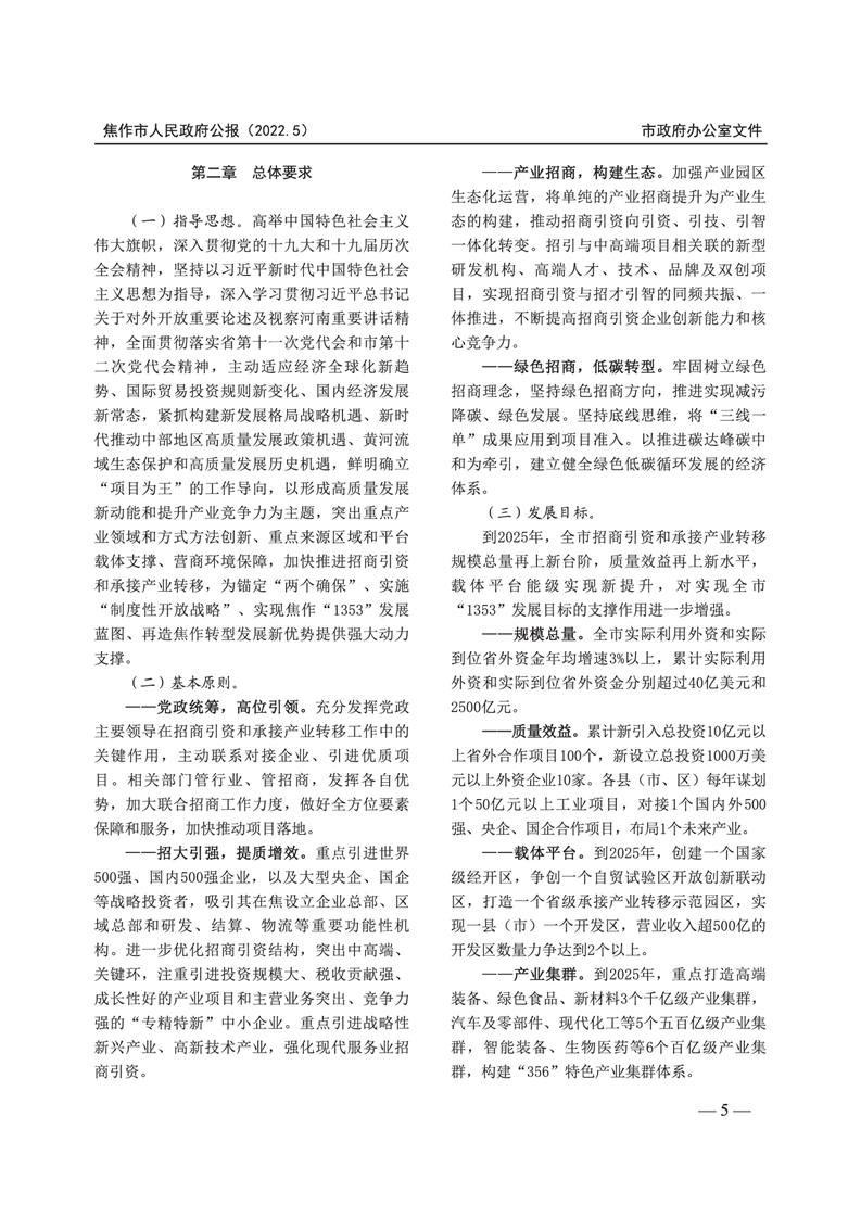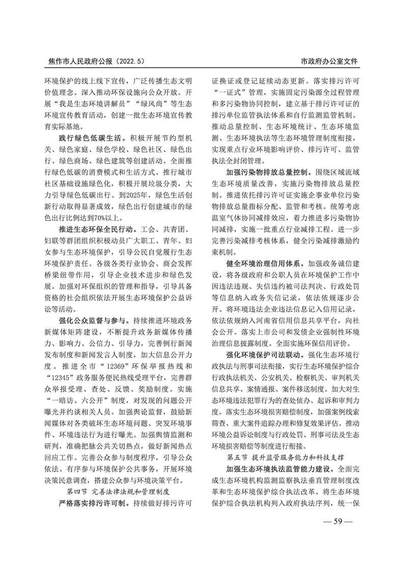 焦作市人民政府公报 2022年第5号