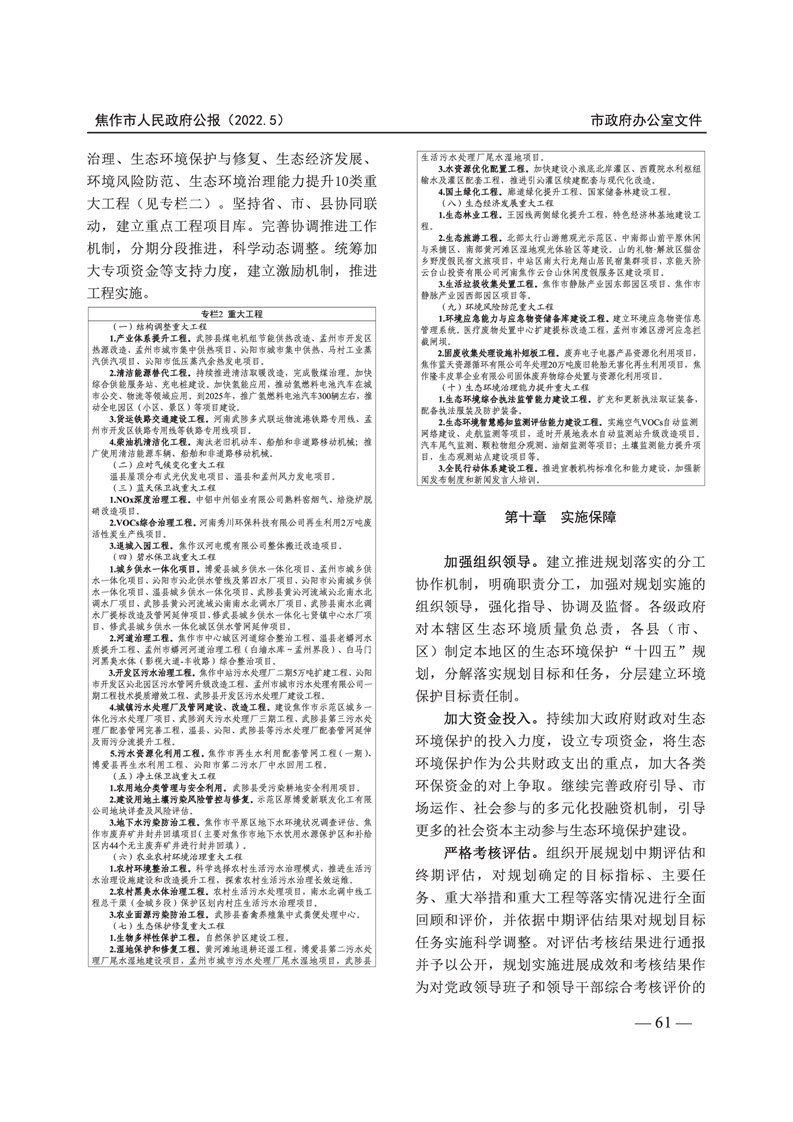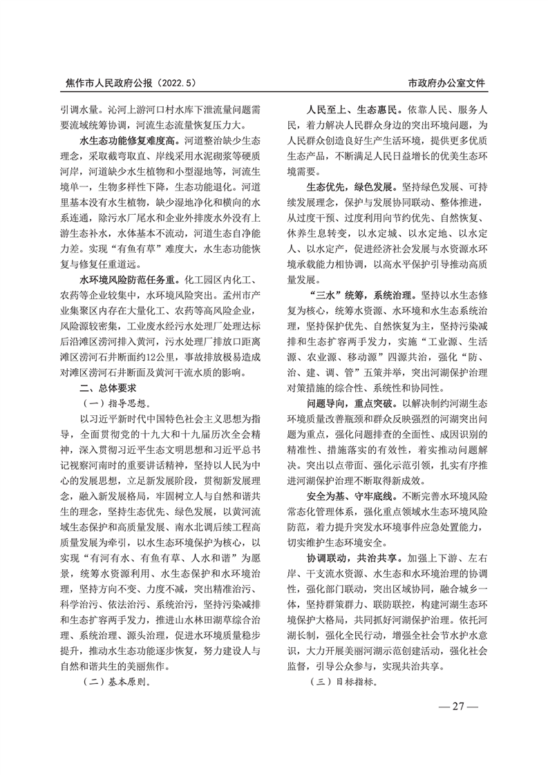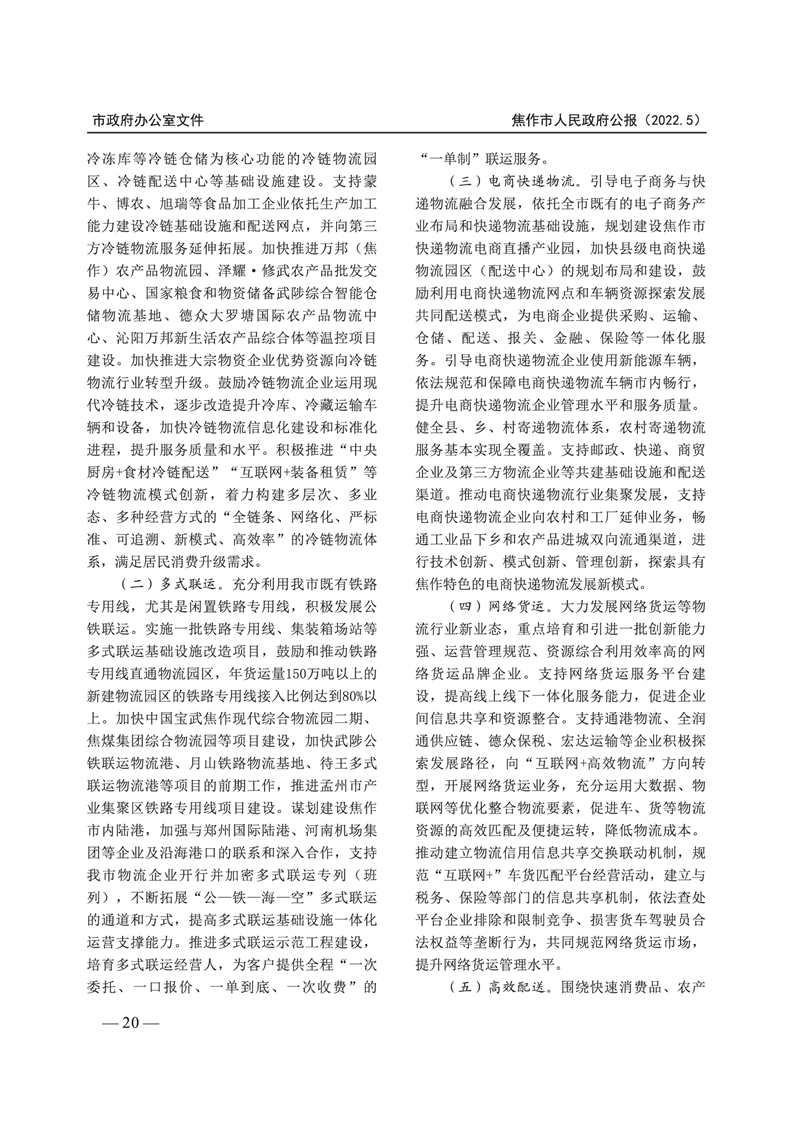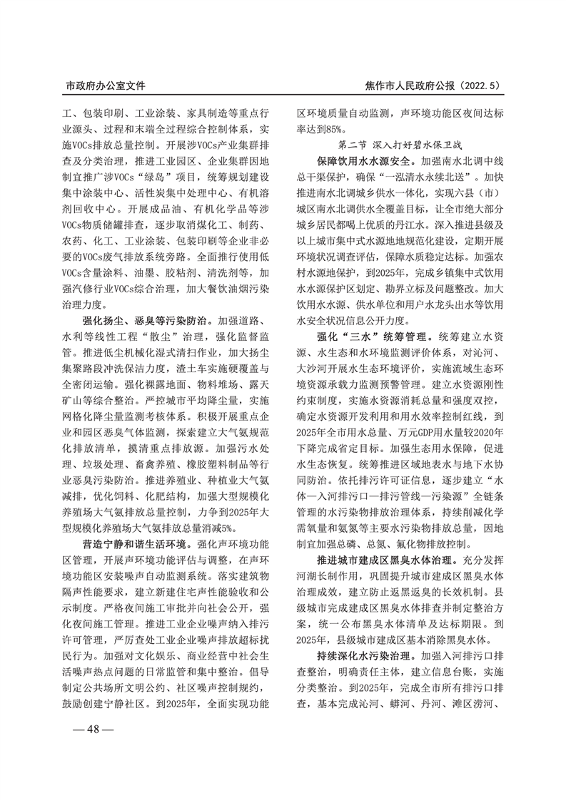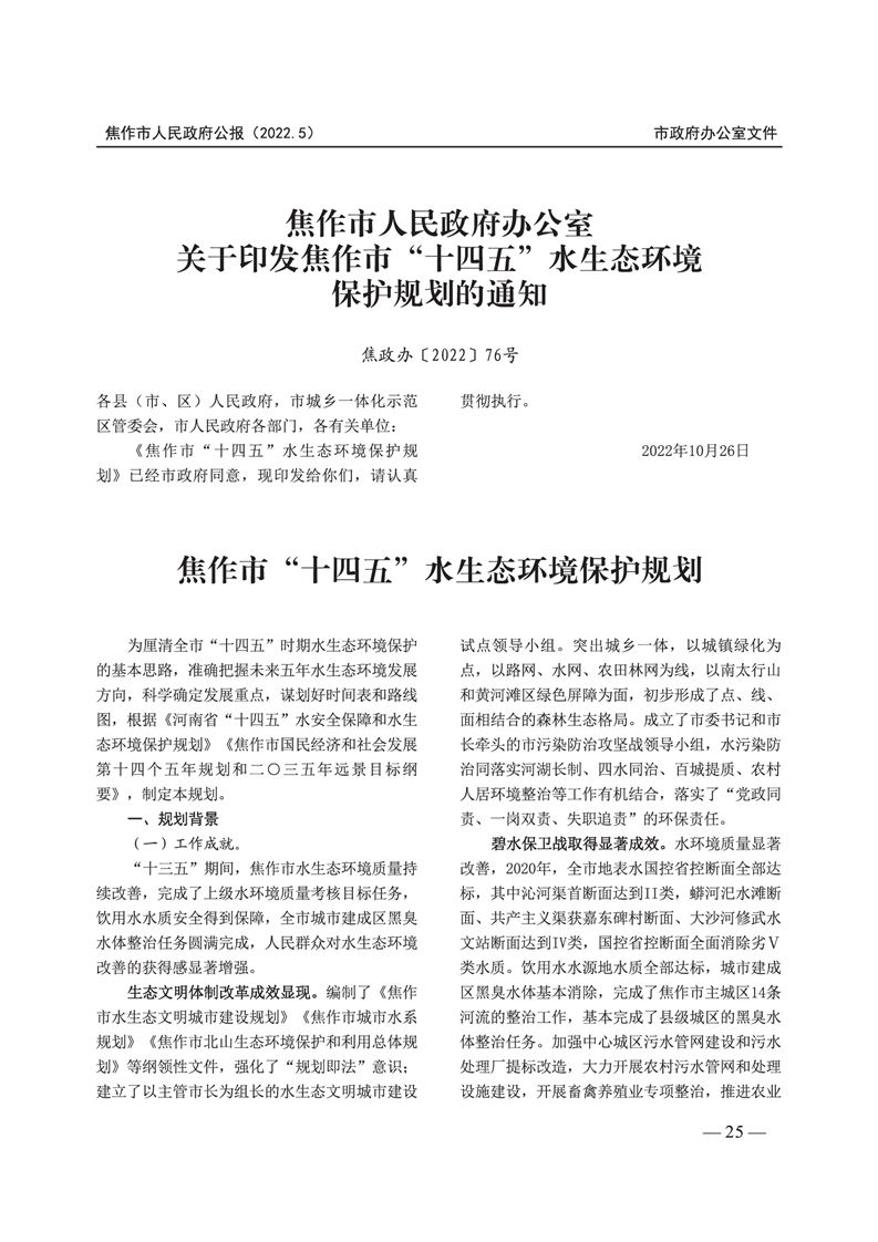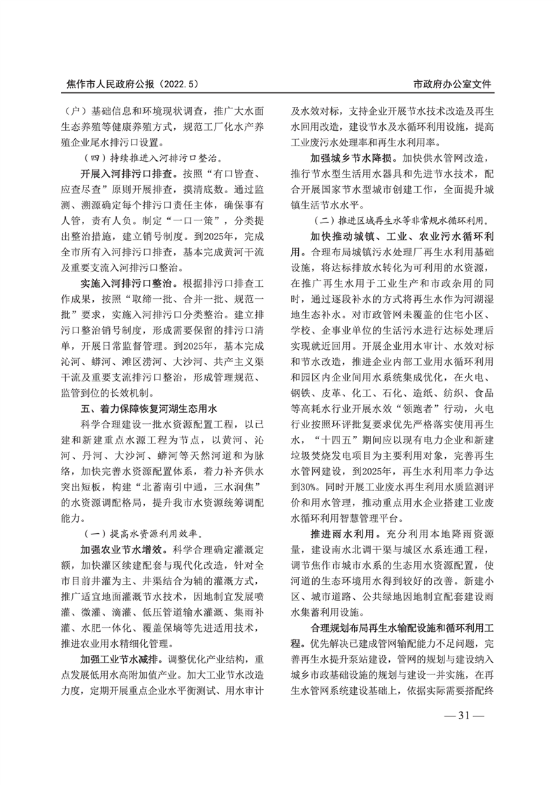 焦作市人民政府公报 2022年第5号
