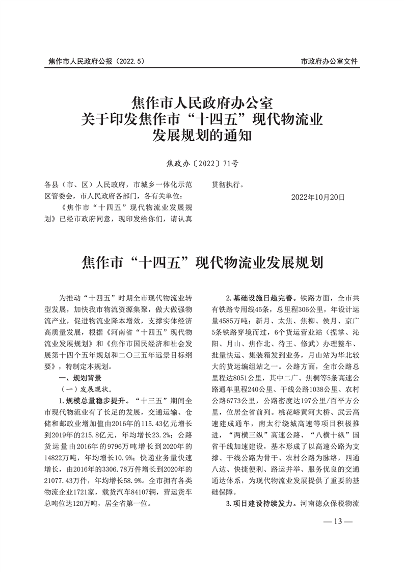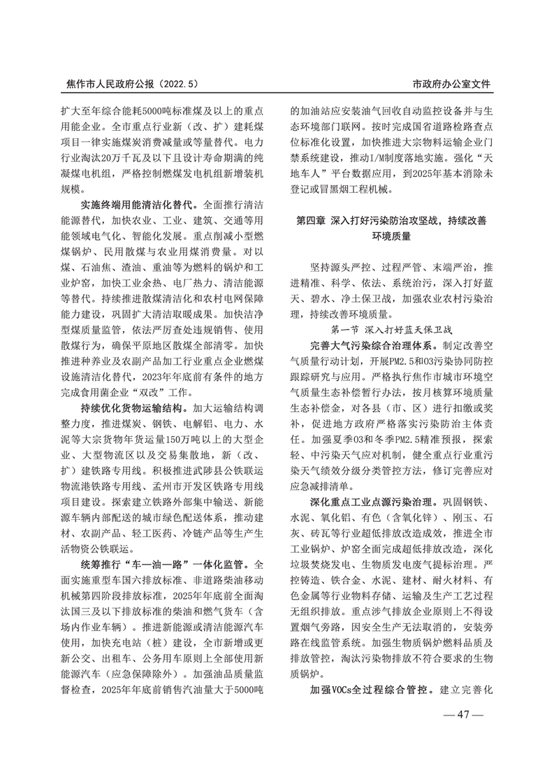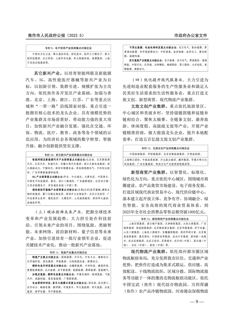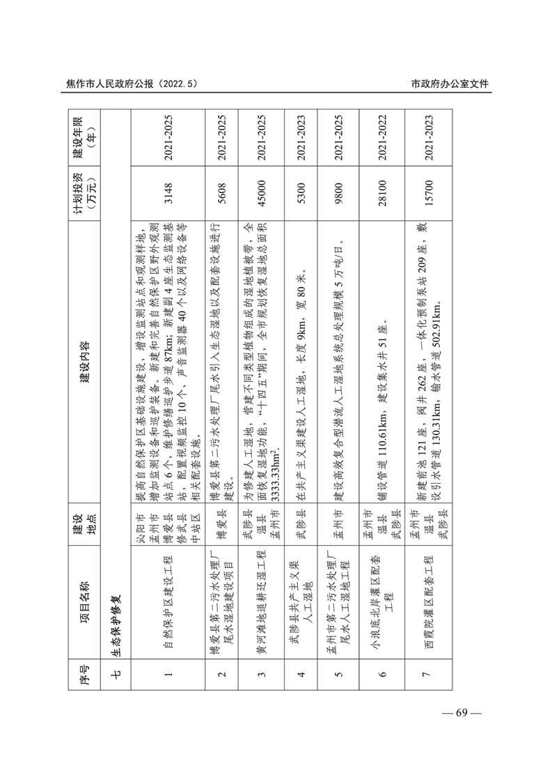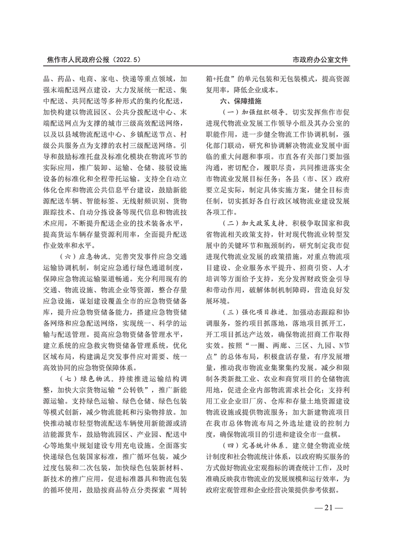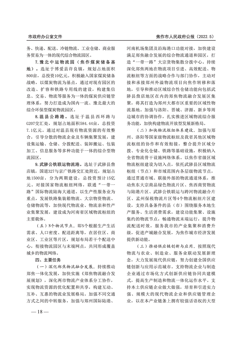 焦作市人民政府公报 2022年第5号