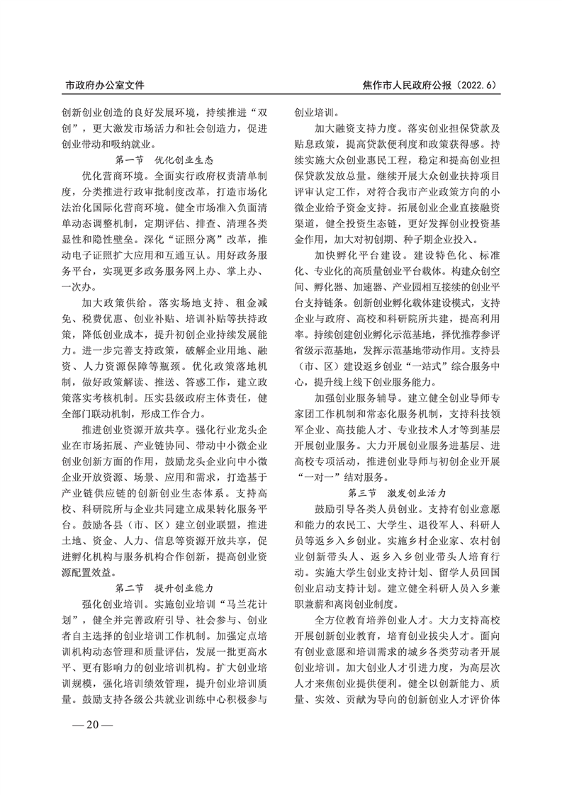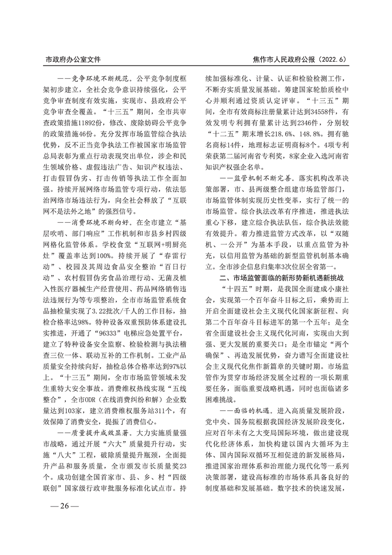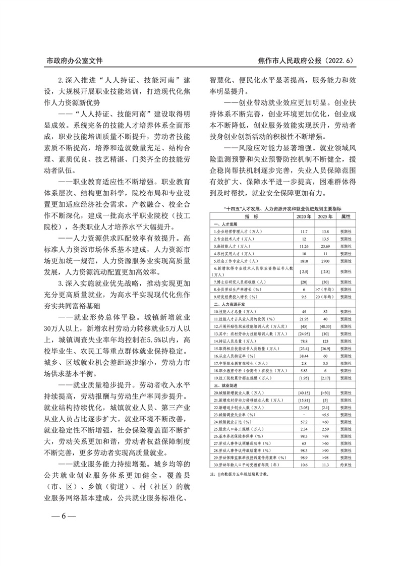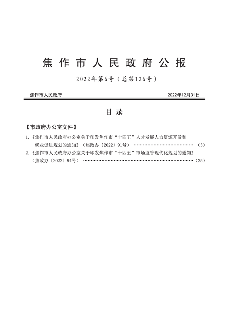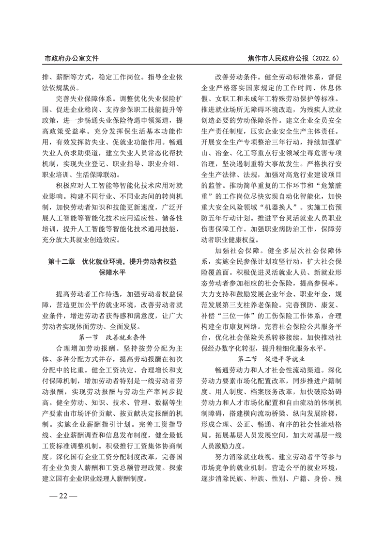 焦作市人民政府公报 2022年第6号