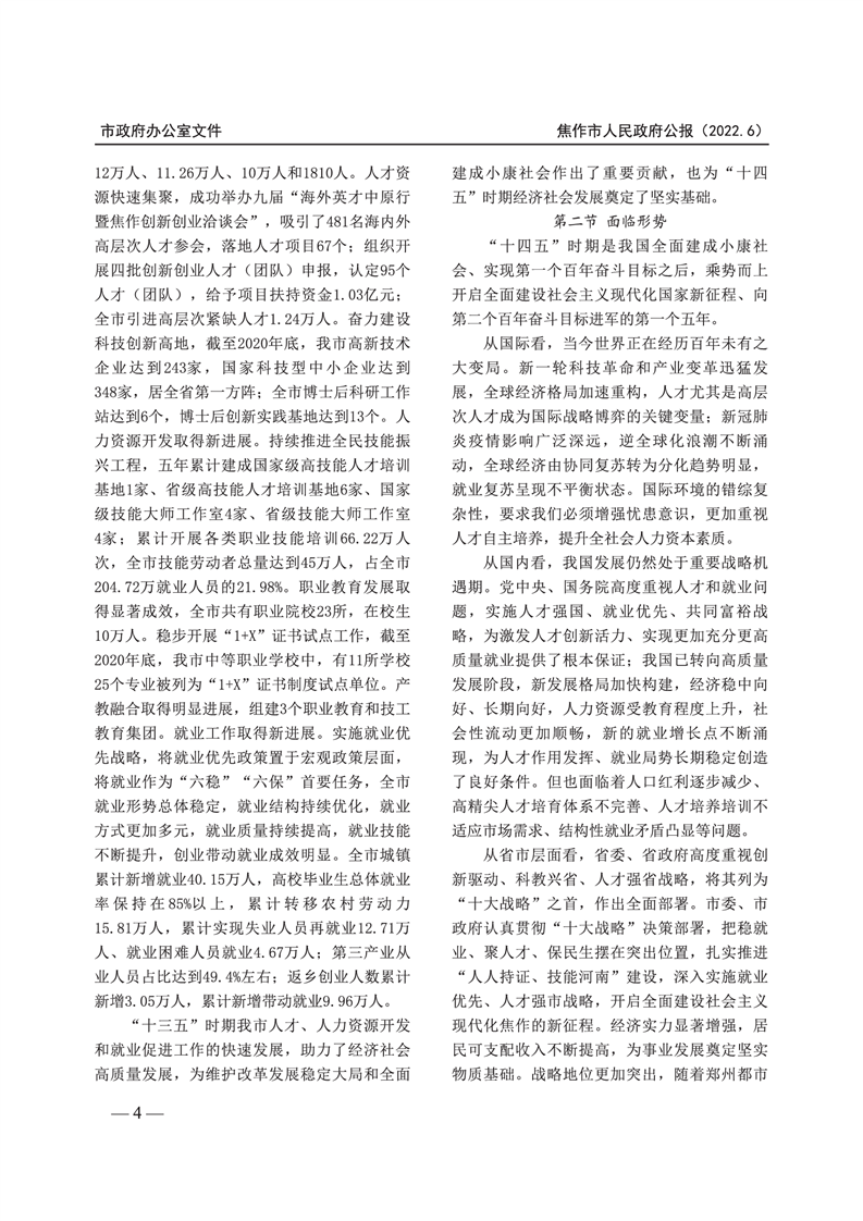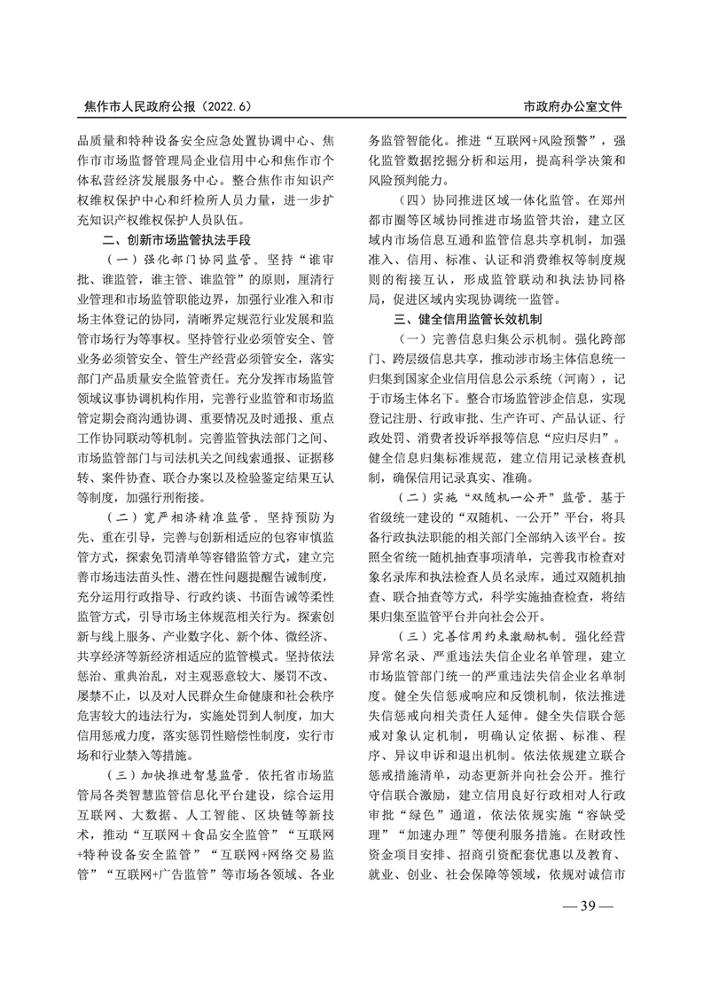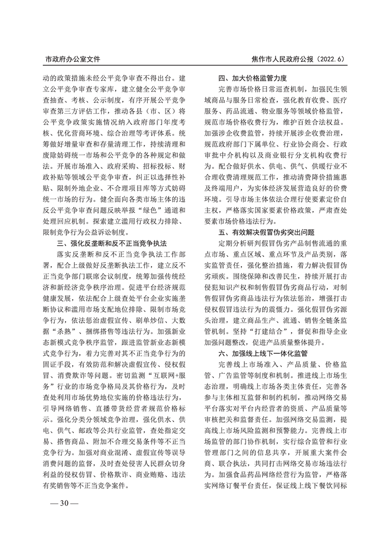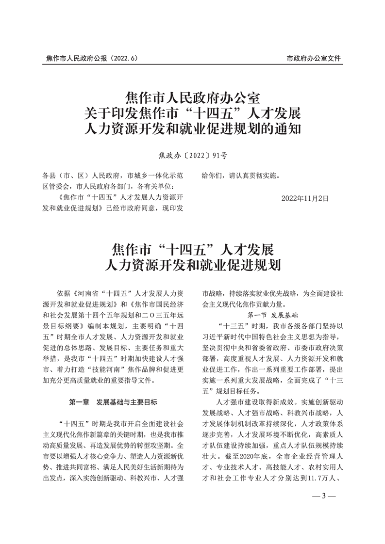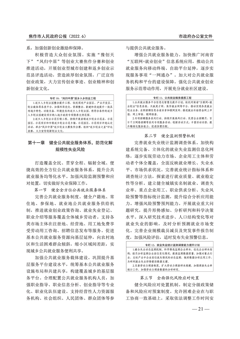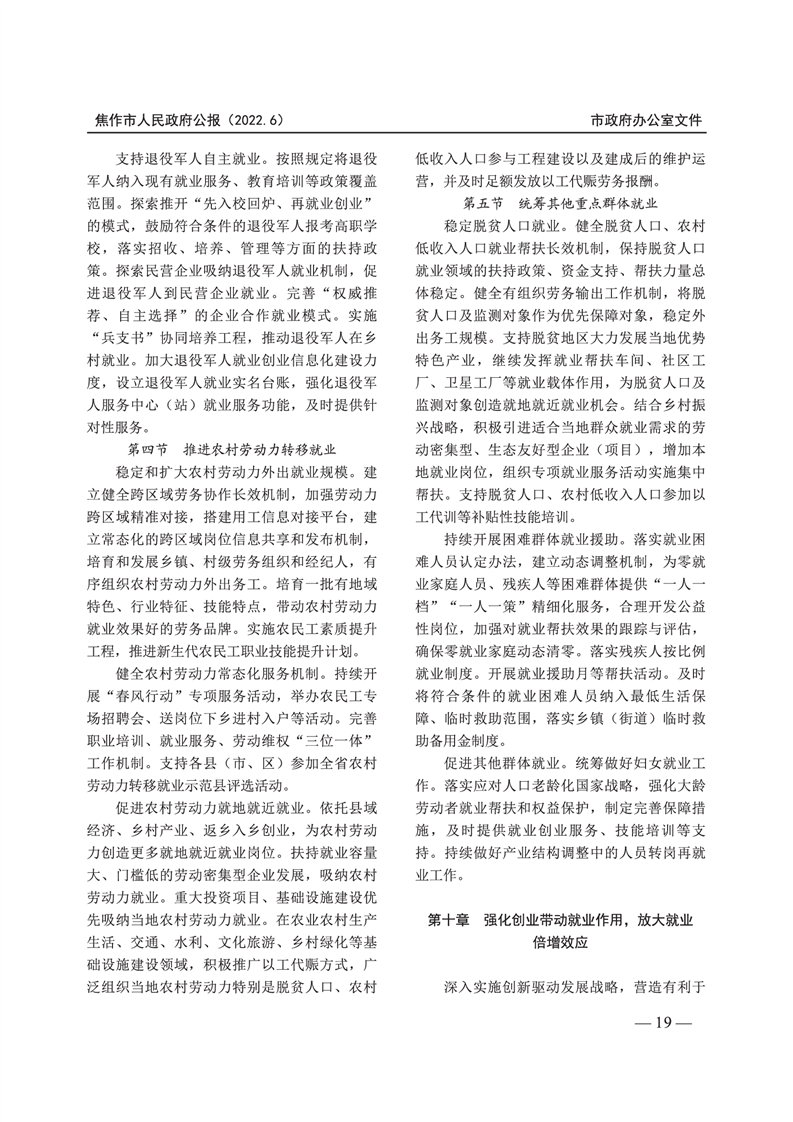 焦作市人民政府公报 2022年第6号