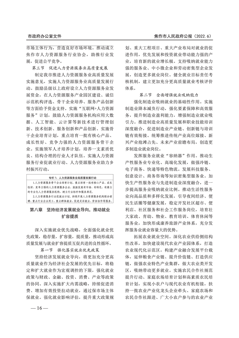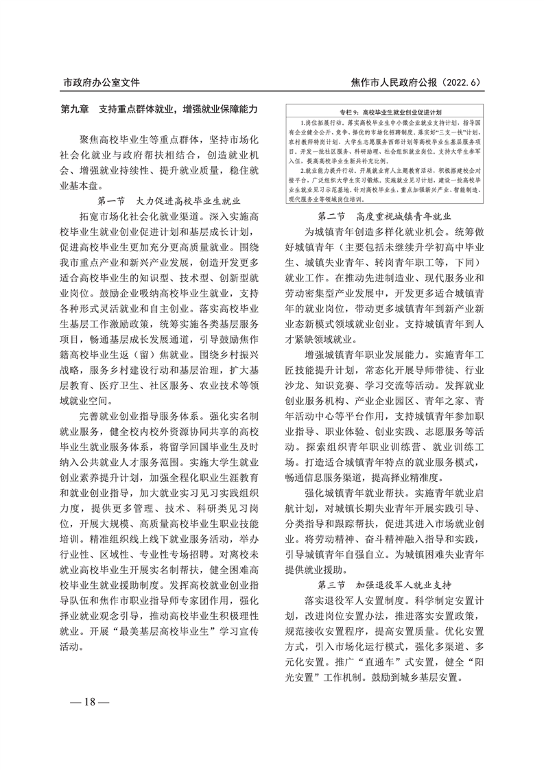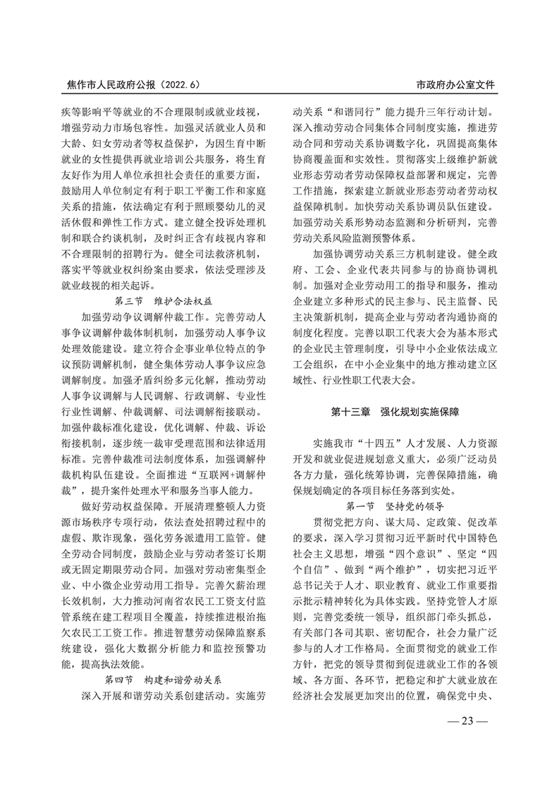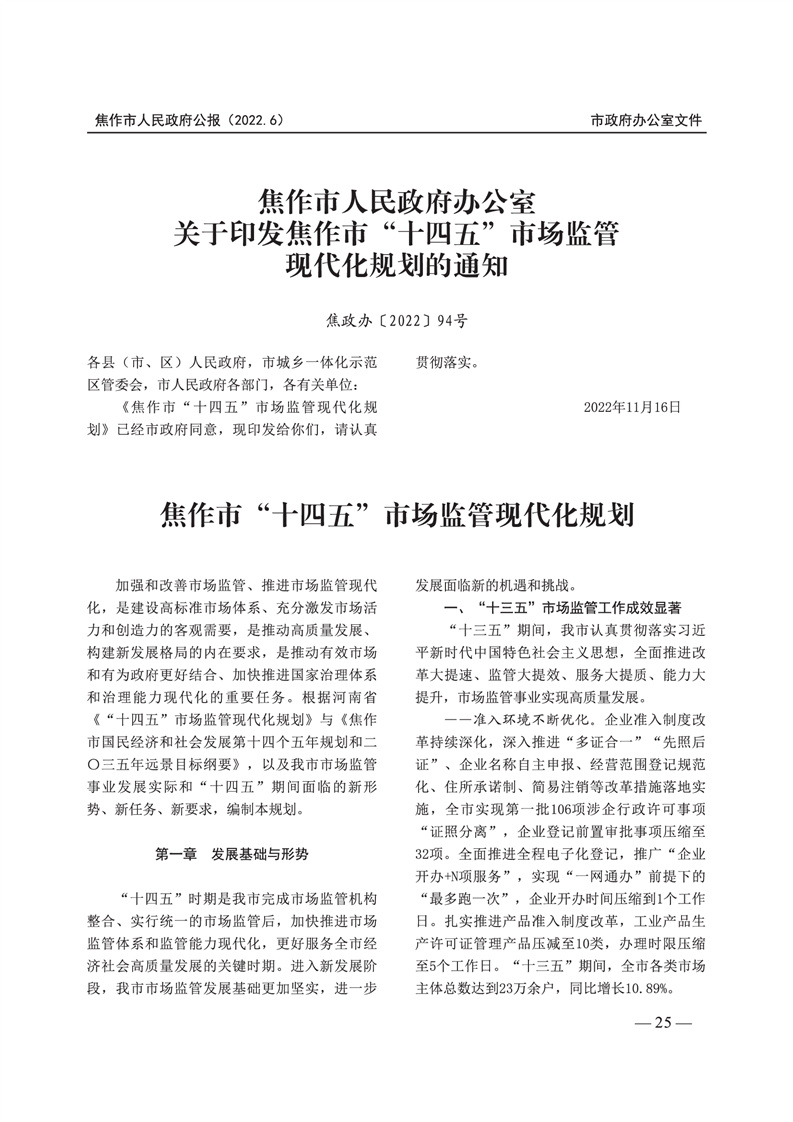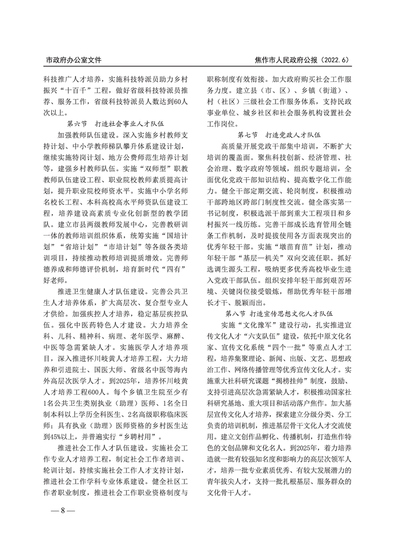 焦作市人民政府公报 2022年第6号