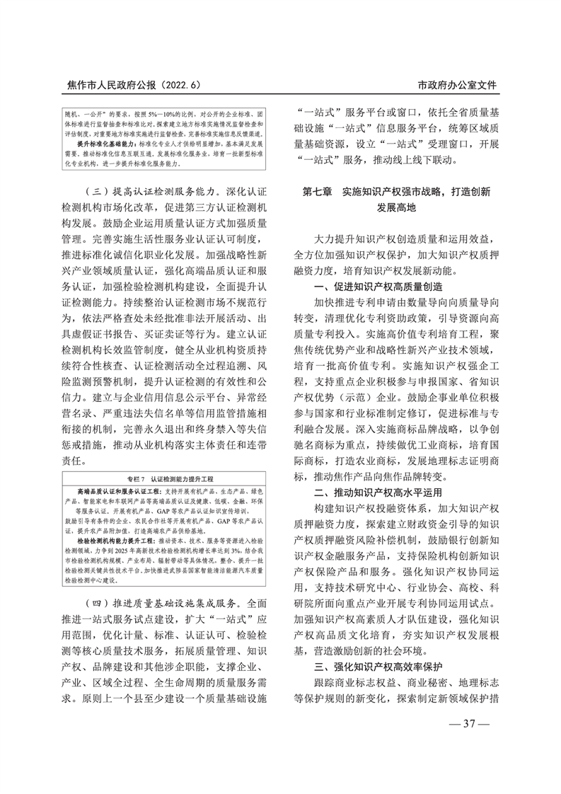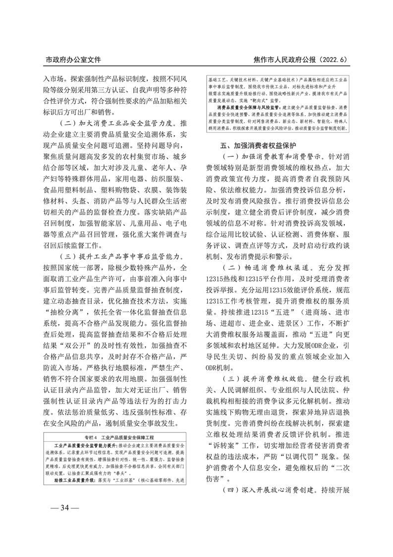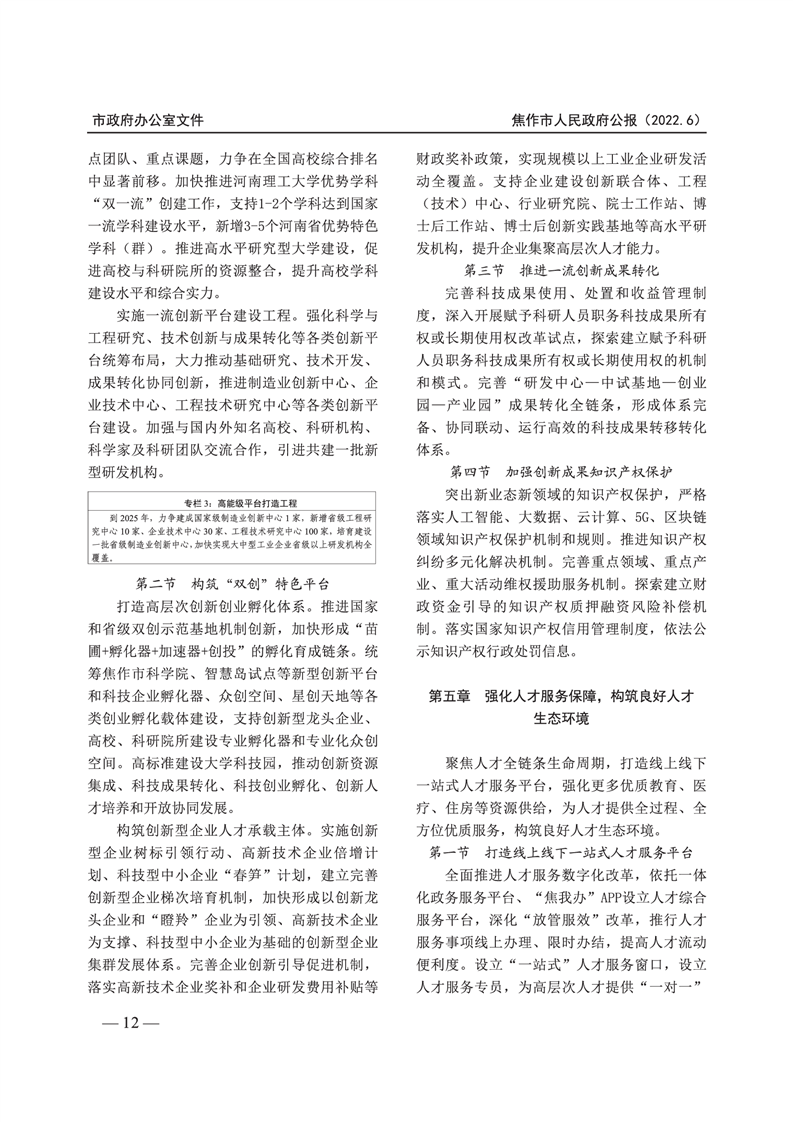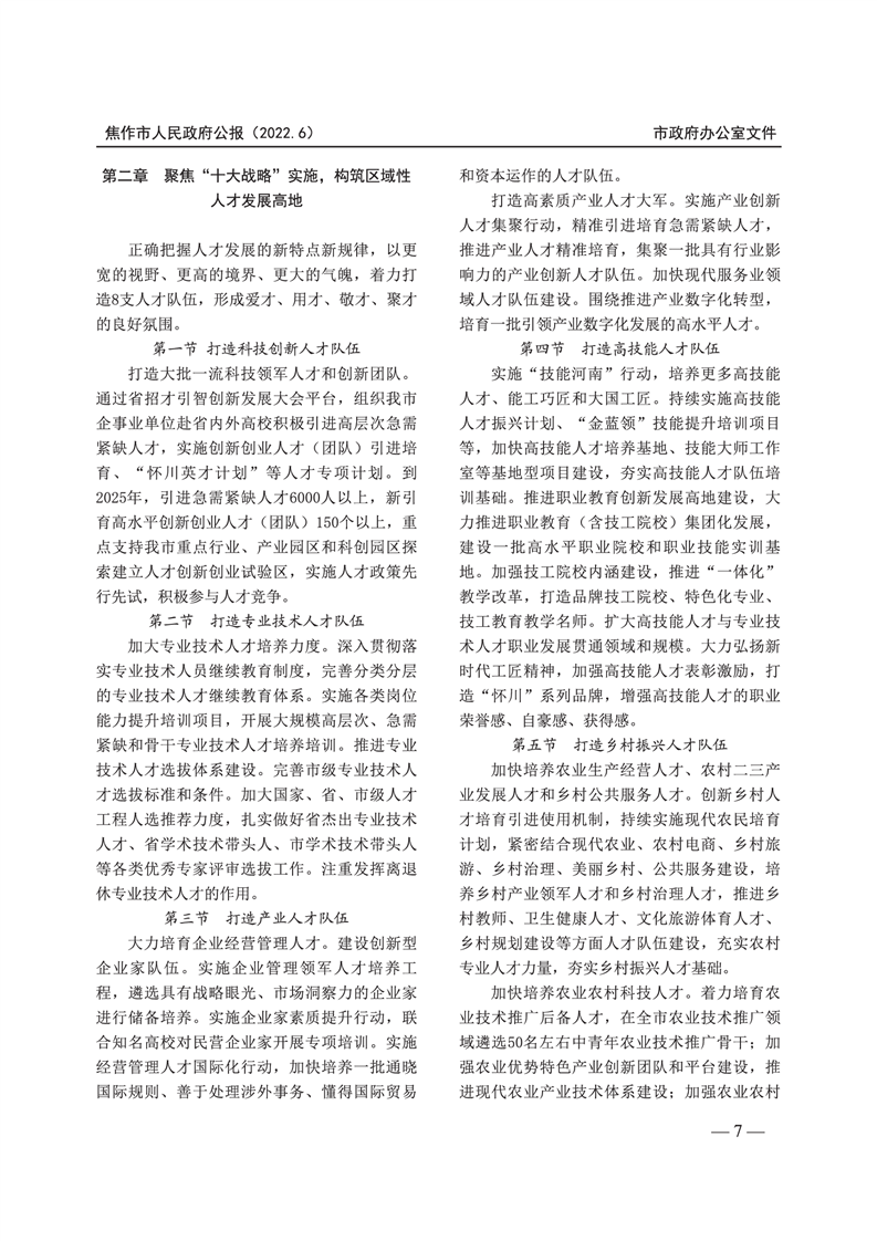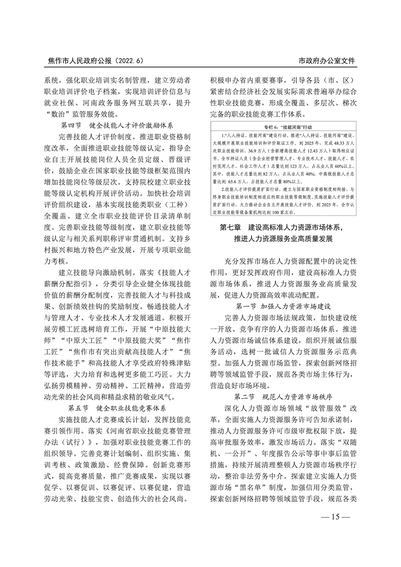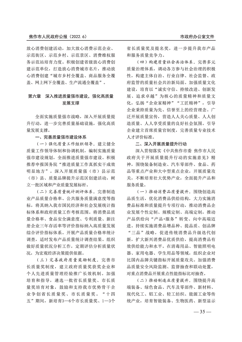 焦作市人民政府公报 2022年第6号