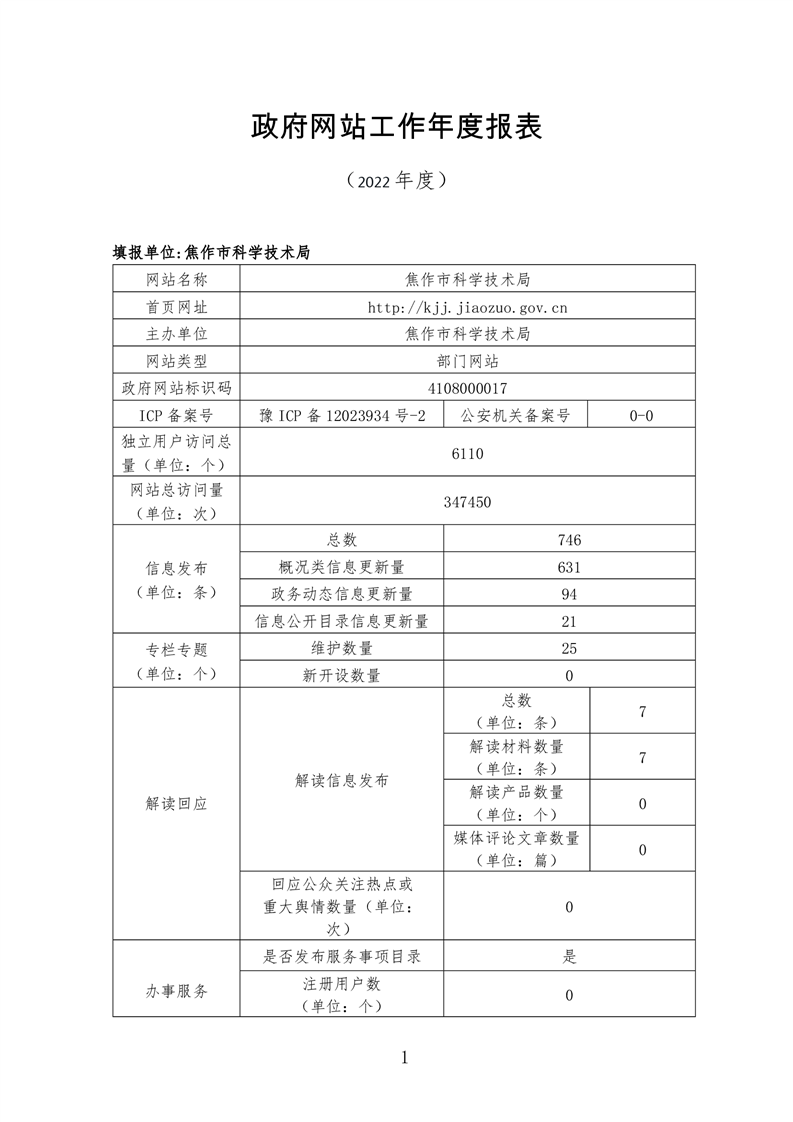 2022年焦作市科技局网站工作年度报表