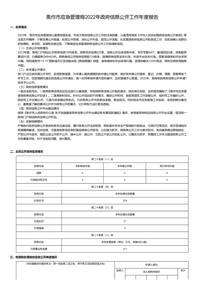 焦作市应急管理局2022年政府信息公开工作年度报告