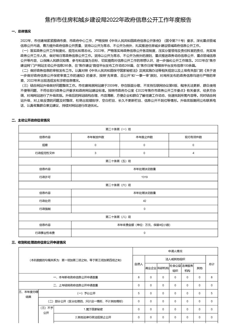 焦作市住房和城乡建设局2022年政府信息公开工作年度报告