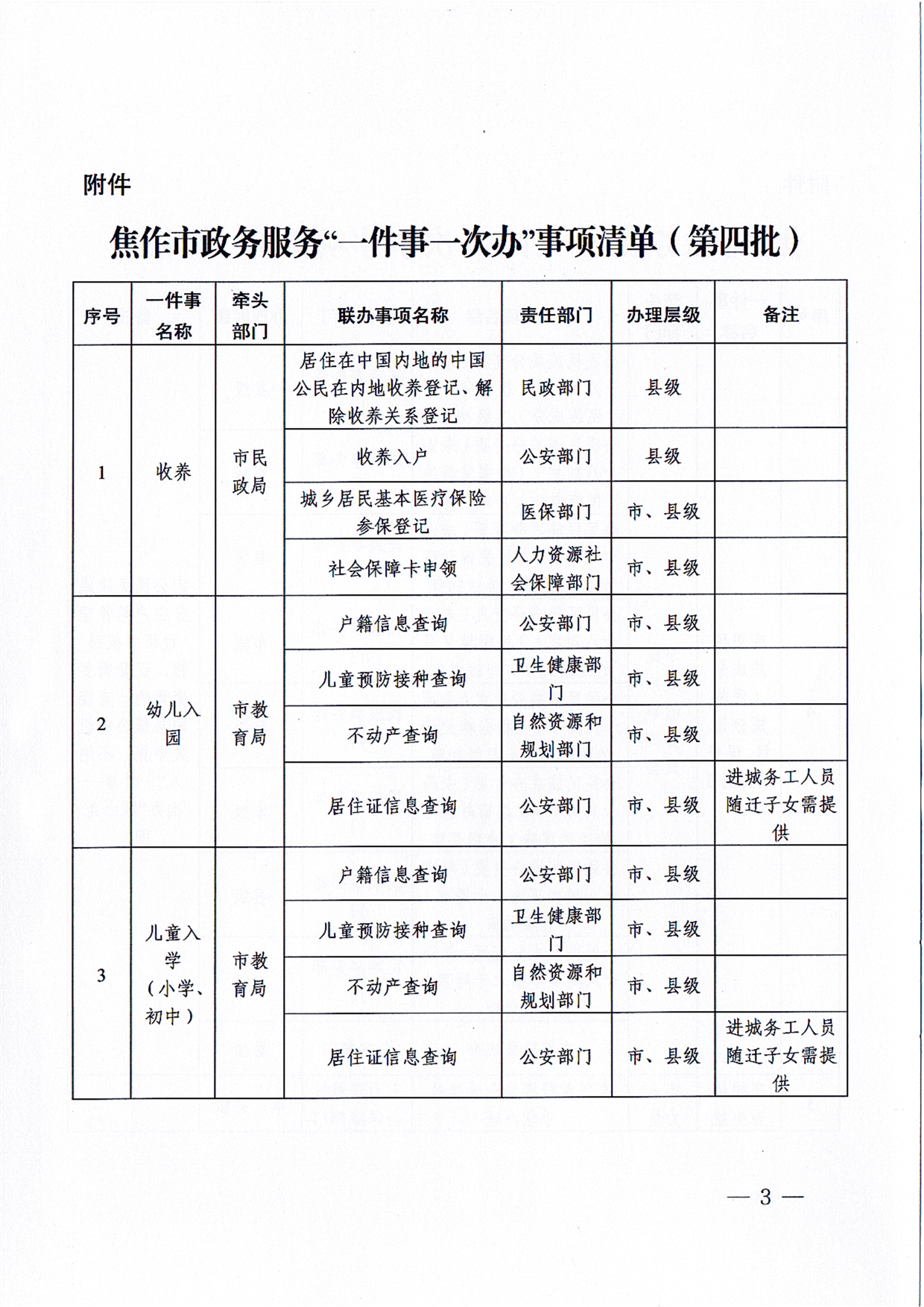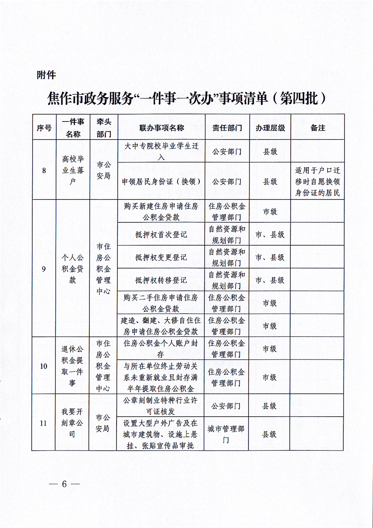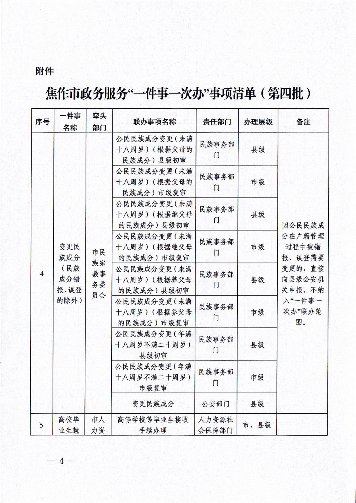 关于公布《焦作市政务服务“一件事一次办”事项清单(第四批)》的通知