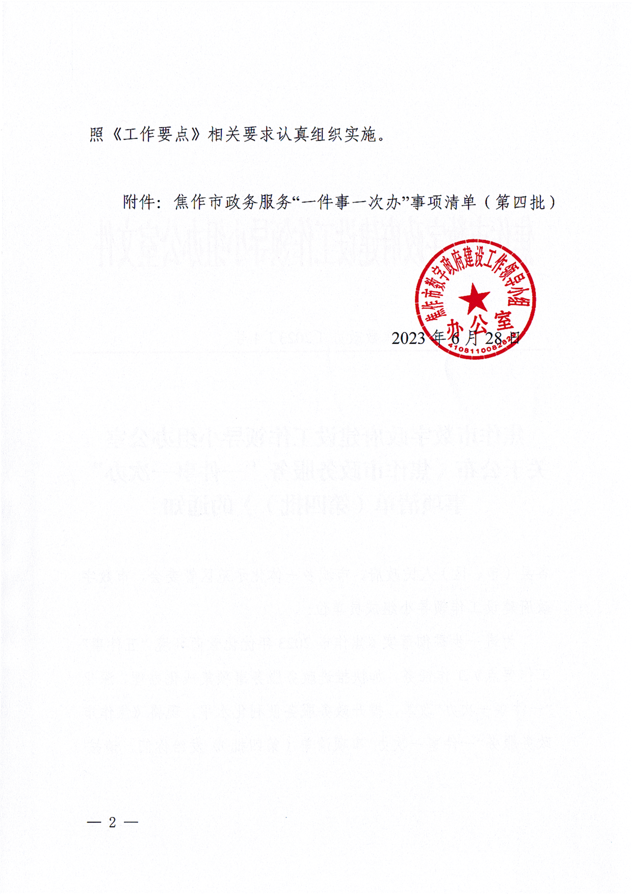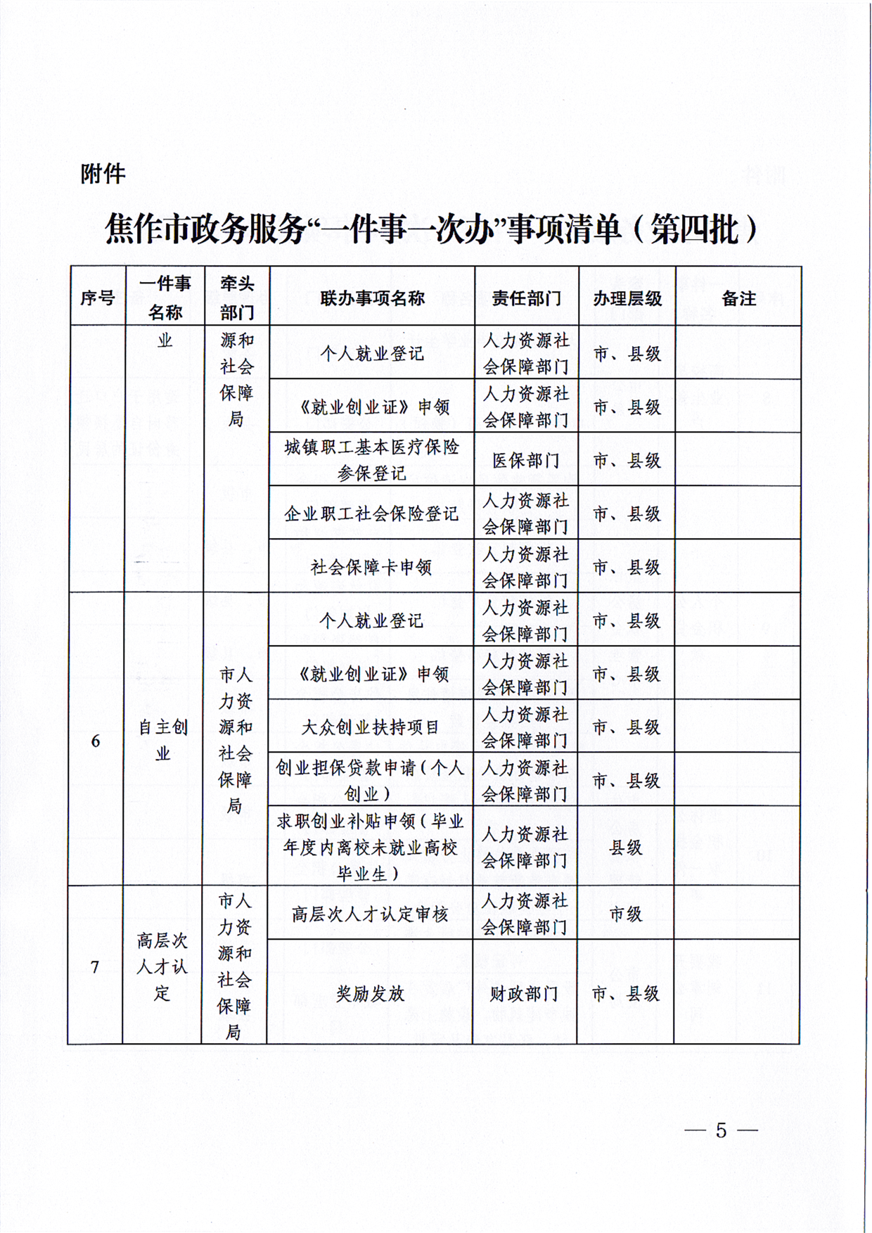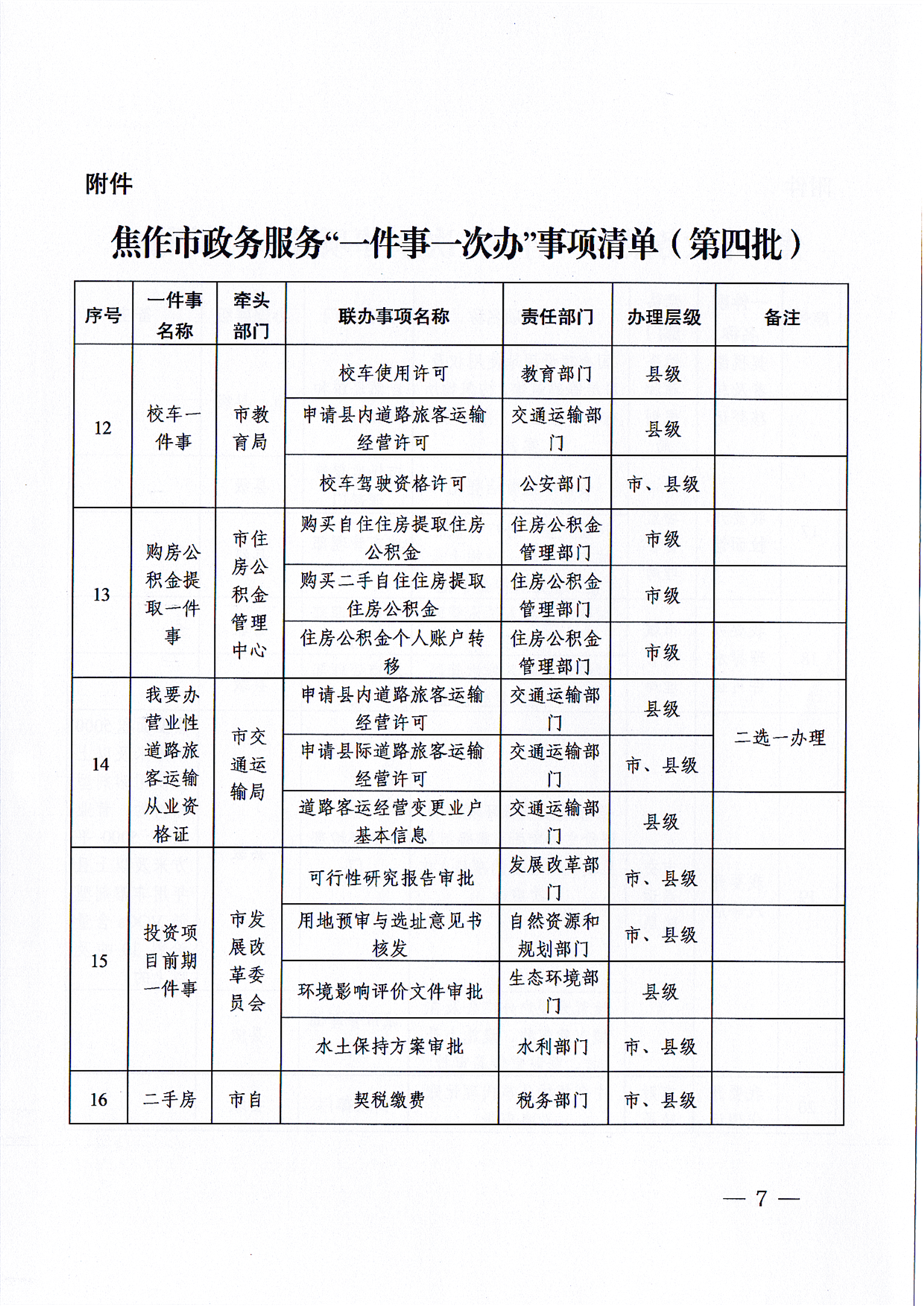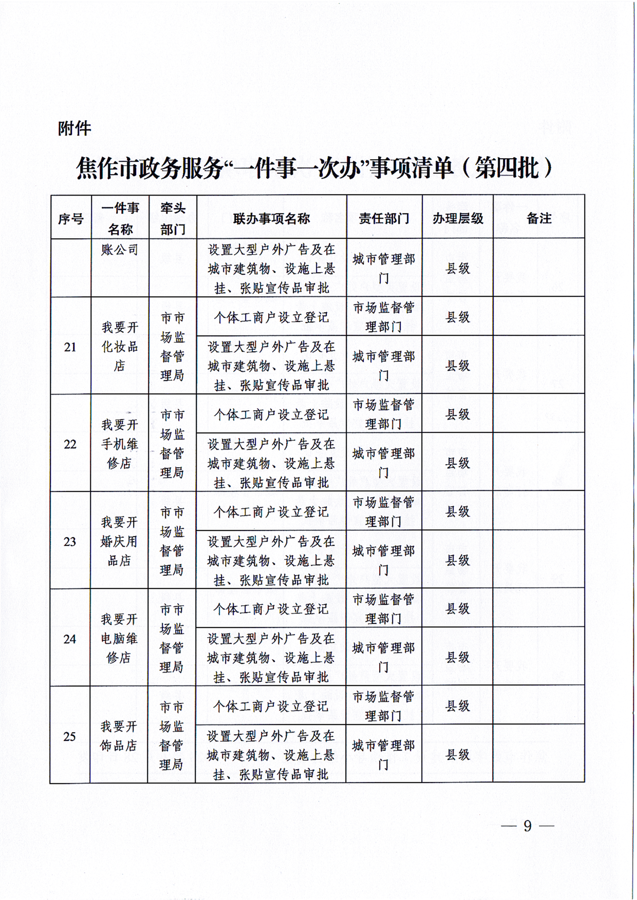 关于公布《焦作市政务服务“一件事一次办”事项清单(第四批)》的通知