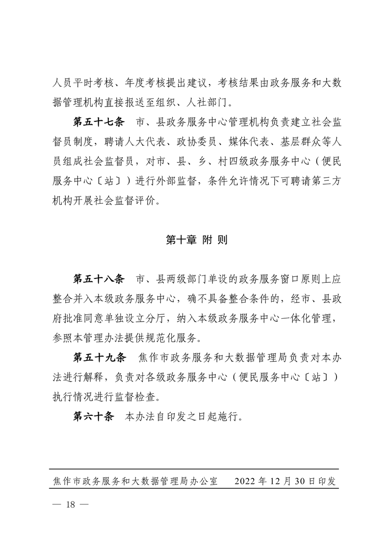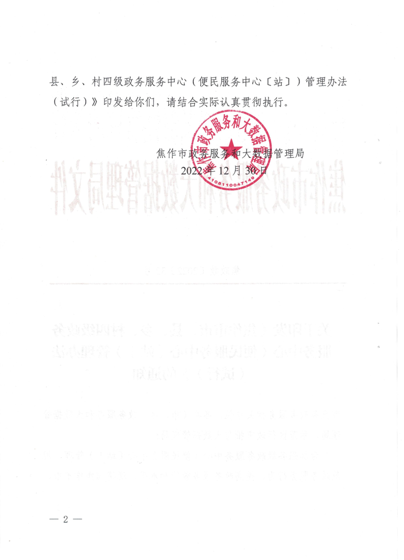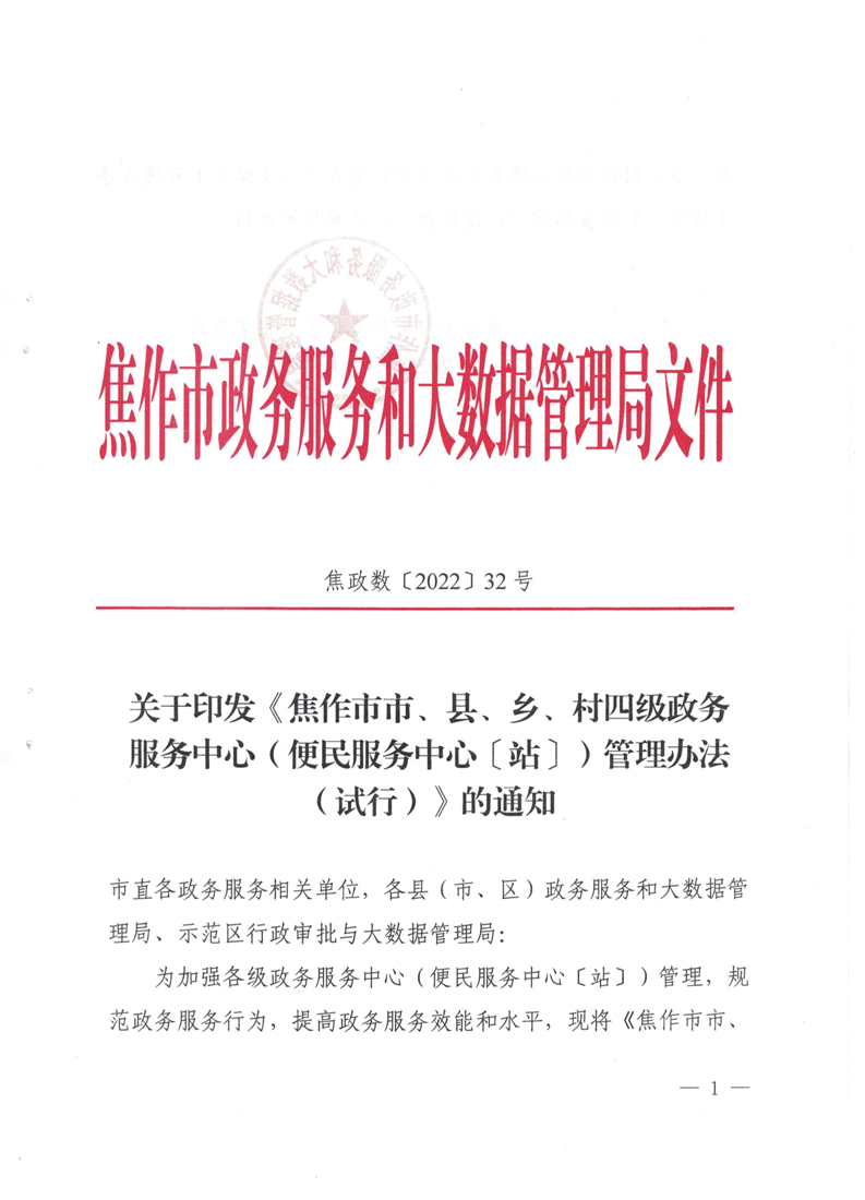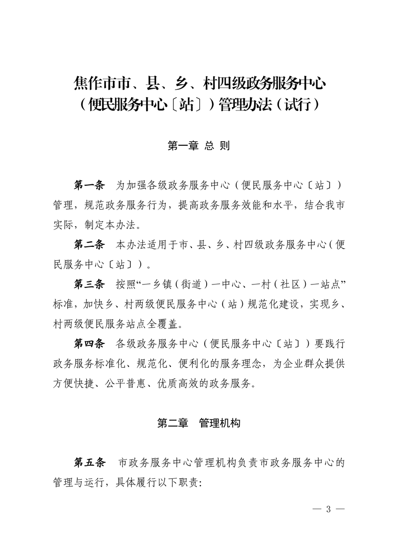 焦作市市、县、乡、村四级政务服务中心(便民服务中心〔站〕)管理办法(试行)