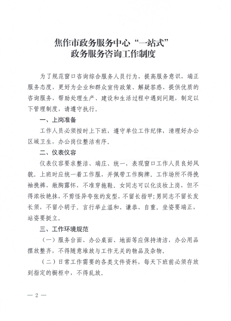 关于印发《焦作市政务服务中心“一站式”政务服务咨询工作制度》的通知