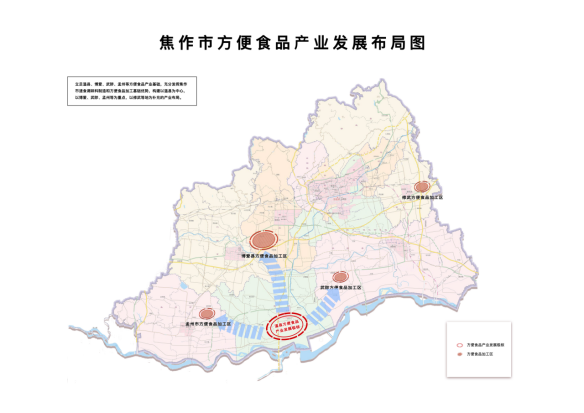 (2)产业布局。立足温县、博爱、武陟、孟州等地方便食品产业基础,充分发挥我市速食调味料制造和方便食品加工基础优势,构建以温县为中心,以博爱、武陟、孟州等为重点,以修武等地为补充的产业布局。