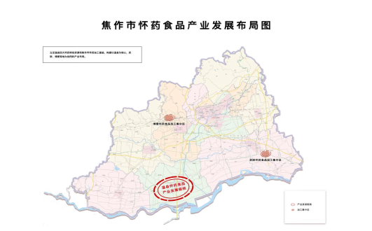 (2)产业布局。立足武陟、温县、博爱等地骨干企业和特色资源,构建以武陟、温县、博爱等地为重点的产业集群。