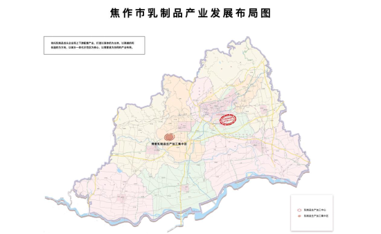 (2)产业布局。依托乳制品龙头企业和上下游配套产业,打造以液体奶为主体,以高端奶和低温奶为方向,以示范区为核心,以博爱县为协同的产业布局。