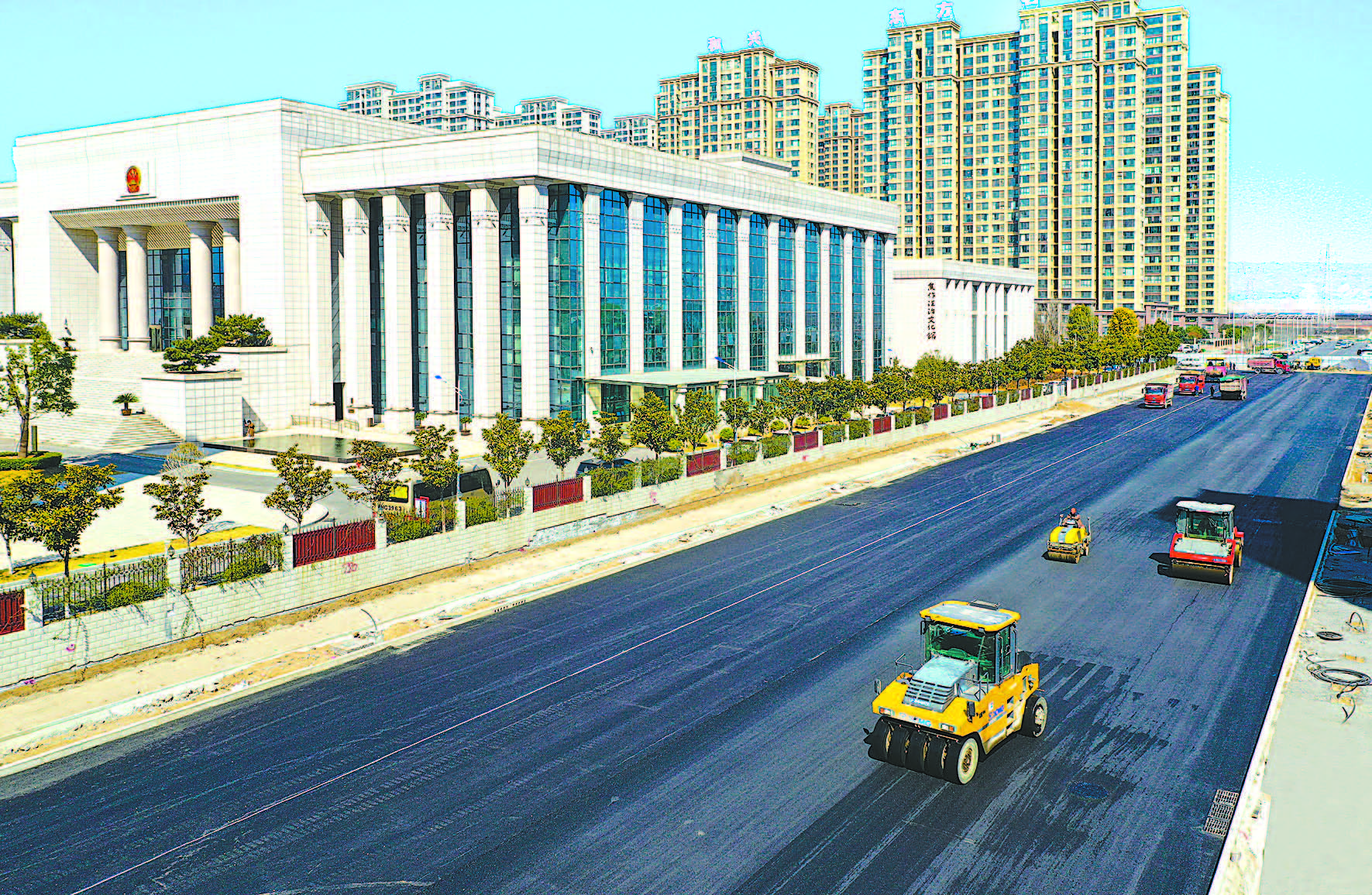 3月20日,市文林路(恩达路—丰收路)道路工程建设现场,施工人员在铺设沥青路面。该工程位于山阳区和高新区,是我市中心城区“断头路”改造工程之一,由市投资集团承建,总投资约2800万元,规划为南北向城市次干路,全长约1000米,红线宽度35米,双向四车道。目前,该工程沥青路面铺设全面开始,绿化、交通设施、照明等附属设施建设同步施工,今年3月底将建成通车。