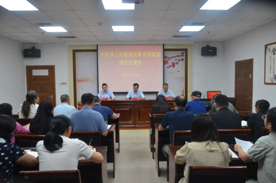 6月17日,市委第三巡察组巡察市档案馆情况反馈会在市档案馆会议室召开。会前,市委第三巡察组向市档案馆馆长崔琳传达了市委书记李亦博同志就巡察整改工作提出的明确要求。反馈会上,市委第三巡察组副组长狄涛同志反馈了巡察意见,组长刘国举对巡察整改工作提出具体要求,市档案馆馆长崔琳主持会议并代表市档案馆作表态发言。