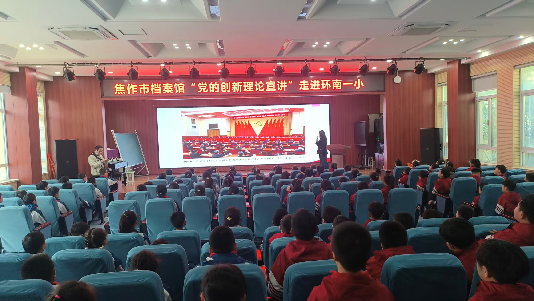 10月底,“红色兰台宣讲团”走进环南一小,开展“党的创新理论宣讲进基层”活动。向师生宣传党的二十届四中全会精神核心要义,讲述红色故事,将理论知识与红色传承相结合,让学生们在聆听中感悟初心使命,厚植爱党爱国情怀。